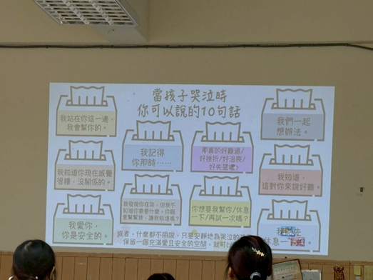 在學校的情境,親師也可以藉由這次座談會進行溝通,對孩孩在校狀況有更進一步的了解。