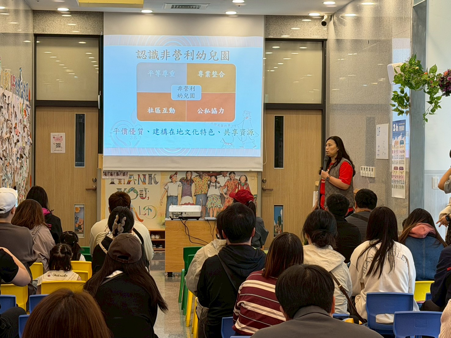 園長媽咪當天分享本園的辦學理念『有趣、有愛、有夢』、各項課程活動設計以及113學年度招生期程。