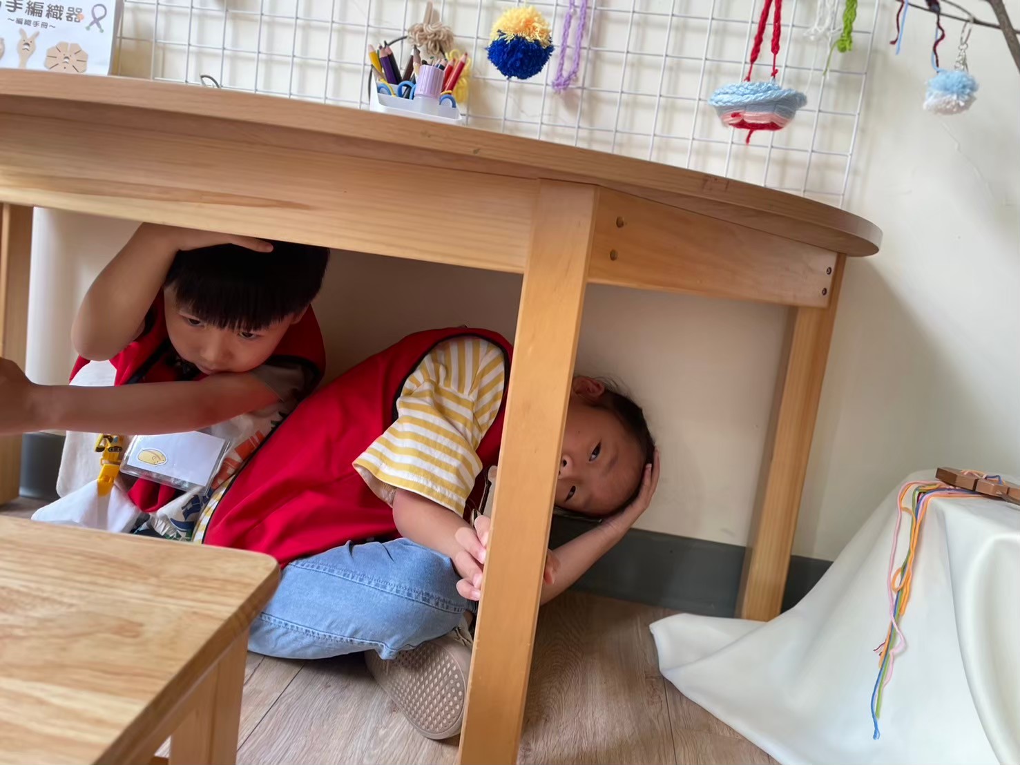 進行防震演練,教導孩子地震時如何保護自己,如抱頭躲桌下、撤離路線,提升安全意識與應變能力。
