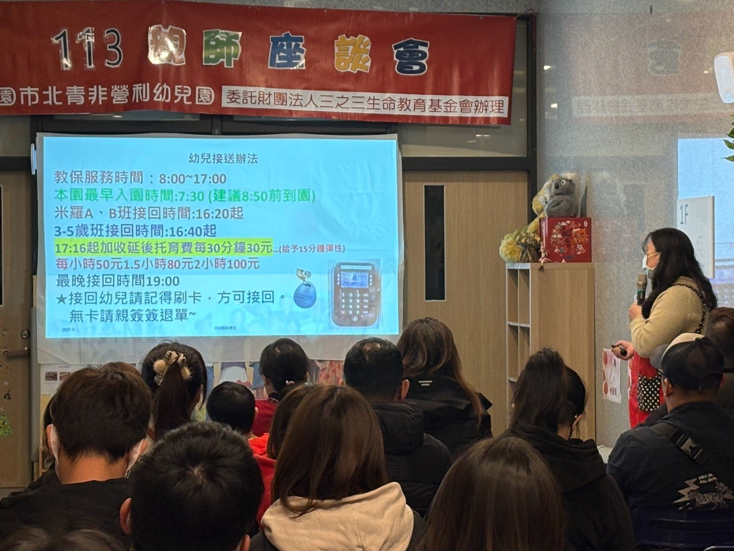 透過座談會分享這學期教學主題、園務須知,家長也有機會提出疑問與建議,以增進親師間溝通。