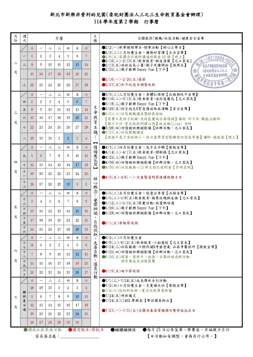 114 學年度第二學期 行事曆114.12.30