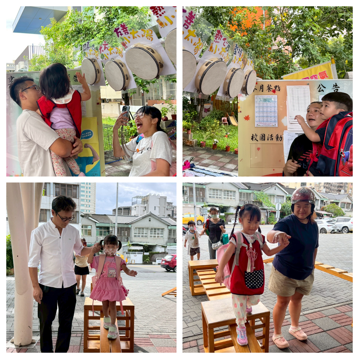 透過遊具(挑戰橋)代表獨立成長邁入幼兒園生活及拍打鈴鼓小太陽(建立勇敢/自信/大方等),歡迎寶貝加入雙十大家庭。