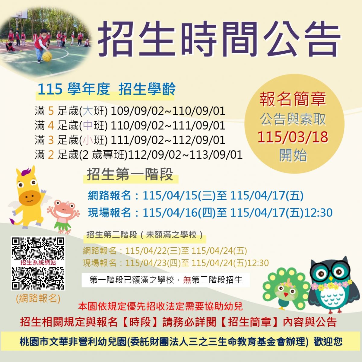 招生簡章歡迎至「桃園市公立及非營利幼兒園招生網」查詢