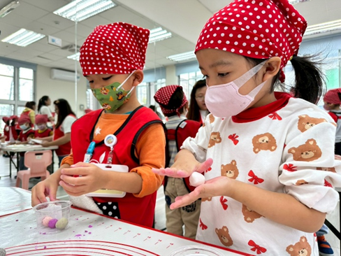 此次幸福廚房烘焙活動結合冬至節慶,帶領幼兒製作「繽紛蔬果彩色湯圓」。活動中,孩子們先認識冬至與搓湯圓的意義,並了解由 8 種蔬果製作的天然湯圓顏色,接著專注將蔬果泥與糯米粉均勻攪拌,以及練習動手搓湯圓。最後完成後,將這份暖心美味湯圓帶回家與家人分享喔!