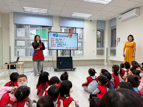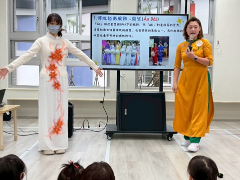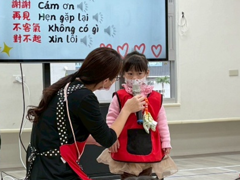 本次的多元文化活動帶領幼兒認識不同國家文化的特色,透過簡報和影片了解越南在食、衣、住、行等方面的文化特徵,老師也穿上了越南的傳統服飾,邀請幼兒欣賞不同國家服飾的美。最後,引導幼兒說說看越南的禮貌用語-你好、謝謝、再見等,幼兒都覺得相當新鮮有趣喔!大家也從中學會尊重自己與他人在文化上的相同與差異,促進文化理解與接納。