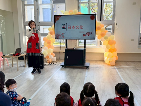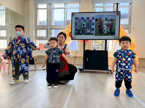 這次活動中,老師透過圖片及影片介紹日本在食衣住行育樂上的特色,並帶來可愛的吉祥物與和服,讓幼兒認識日本風情,最後一起練習日本的禮貌用語,整個活動有趣又充滿文化氣息喔!