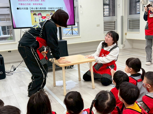 今天的活動透過小短劇和故事影片,讓幼兒知道對待他人要尊重,不能說不好聽的話;也讓幼生知道不是只有身體受傷才是受傷,心靈受傷也是傷害的一種;相信幼生透過這次的活動都能知道如何尊重別人,並且聽到別人說不好聽的話能勇說出來!