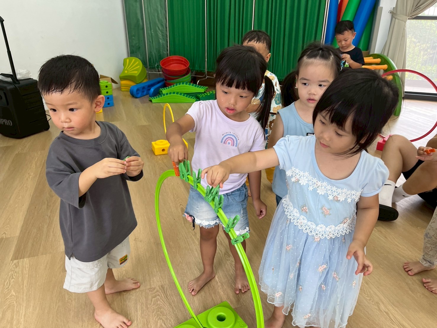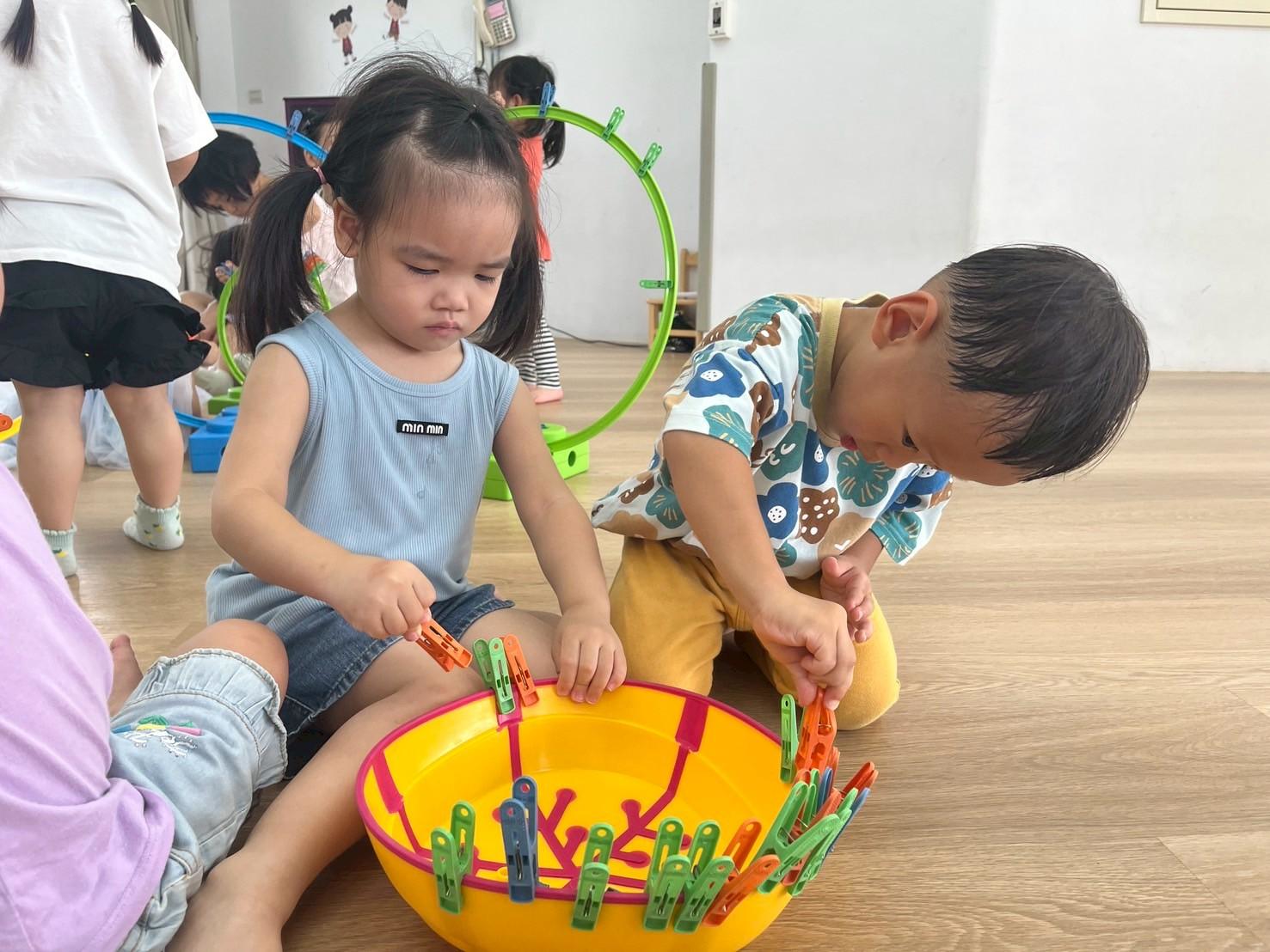 夾子對孩子來說既熟悉又陌生,要怎麼控制夾子,透過夾的方式,讓孩子們去使用小肌肉的靈活度,也利用不同的遊戲方式,不只練習了小肌肉,也培養孩子的專注力及反應力