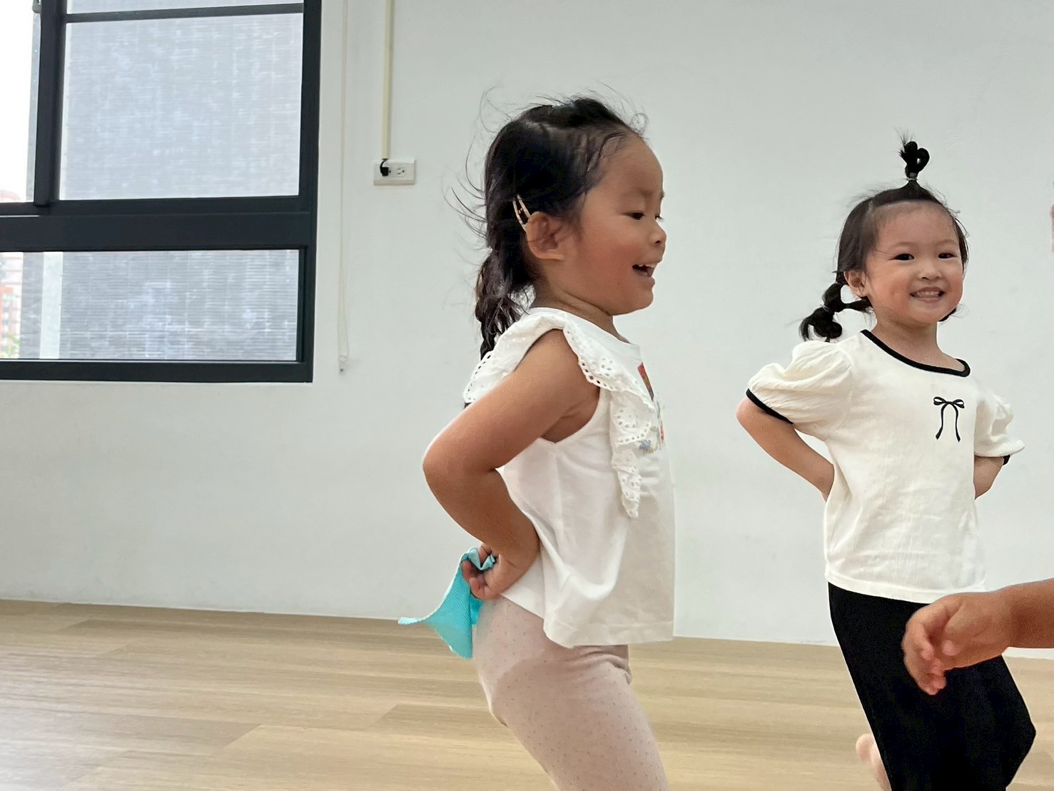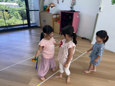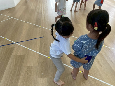 透過不同的指令,讓孩子們聽指令擺出不同的動作,在過程中增加了不同難度的互動,訓練孩子的小肌肉的力量及反應力,並且透過動作的轉換,孩子們需要有高度的專注力,才能跟上不同的動作喔!