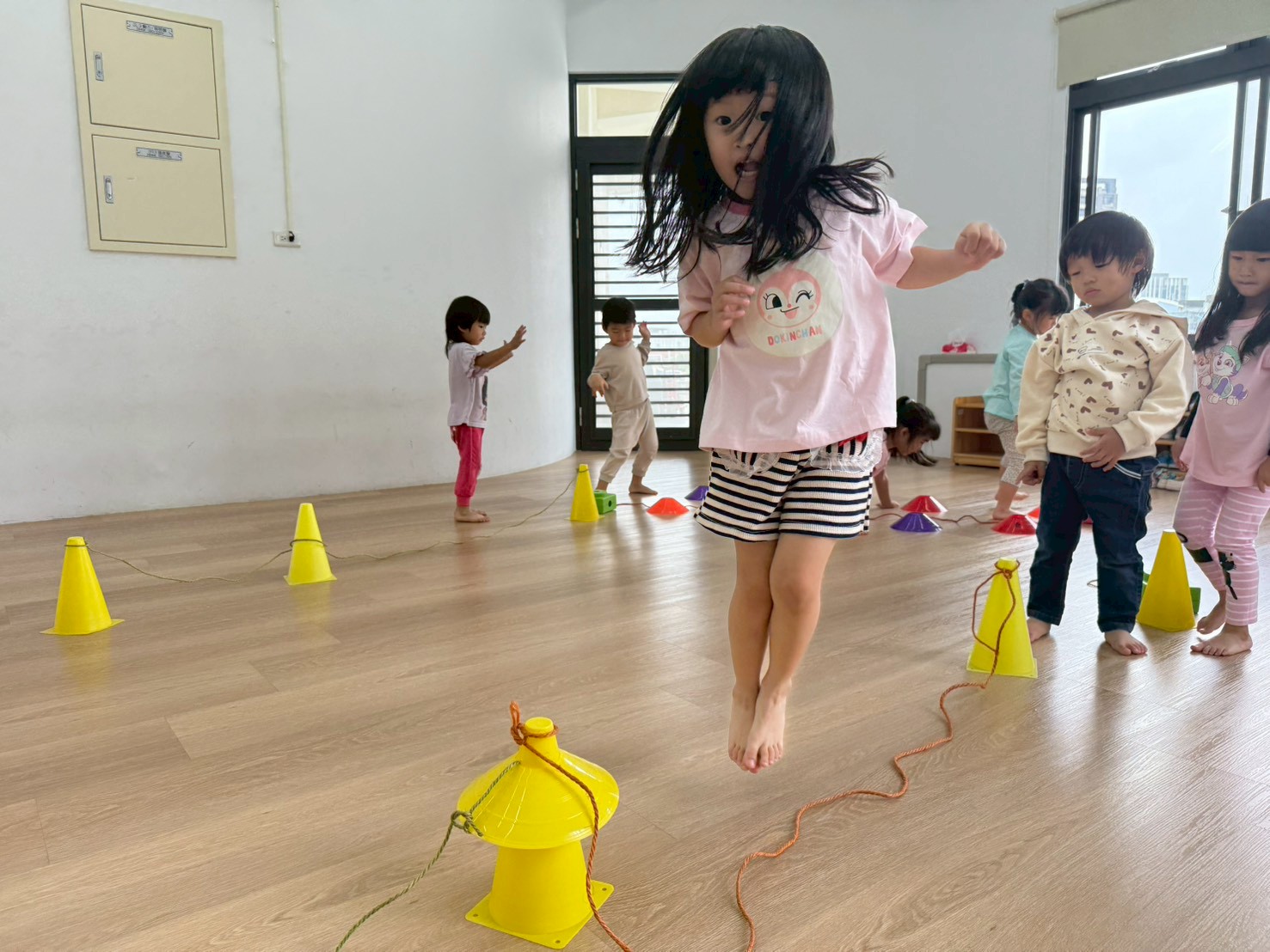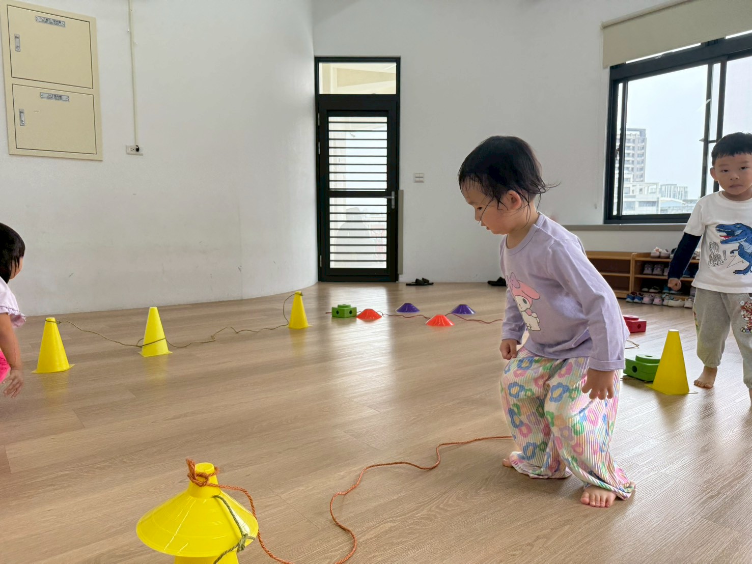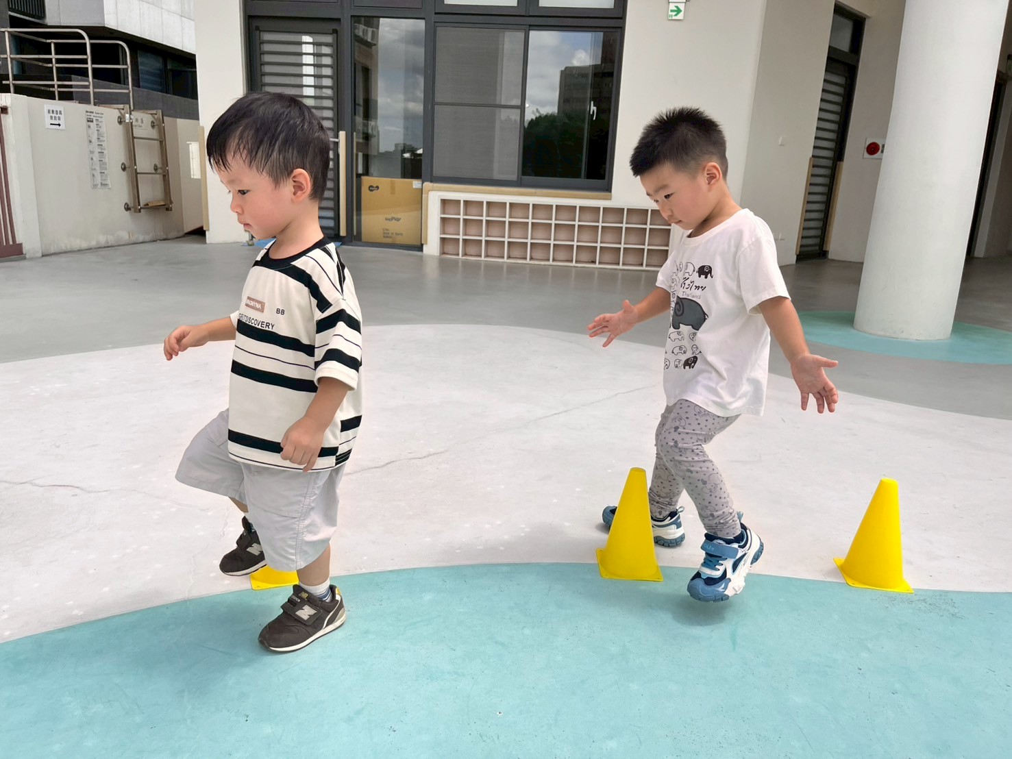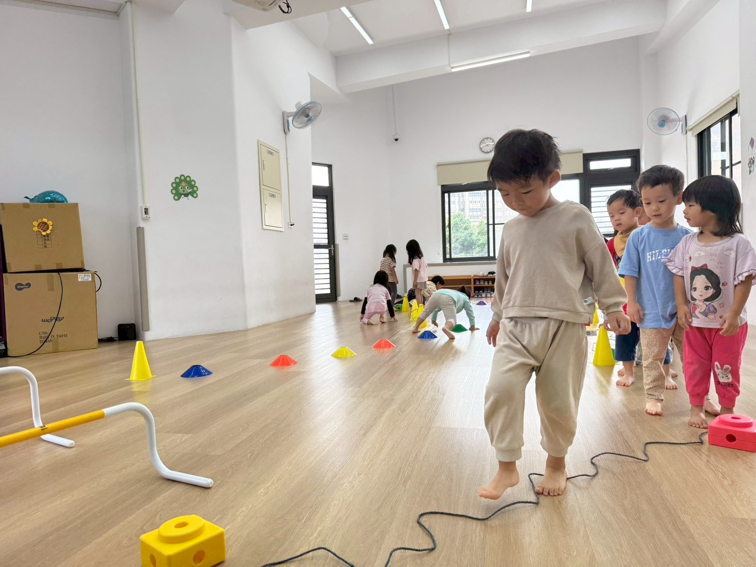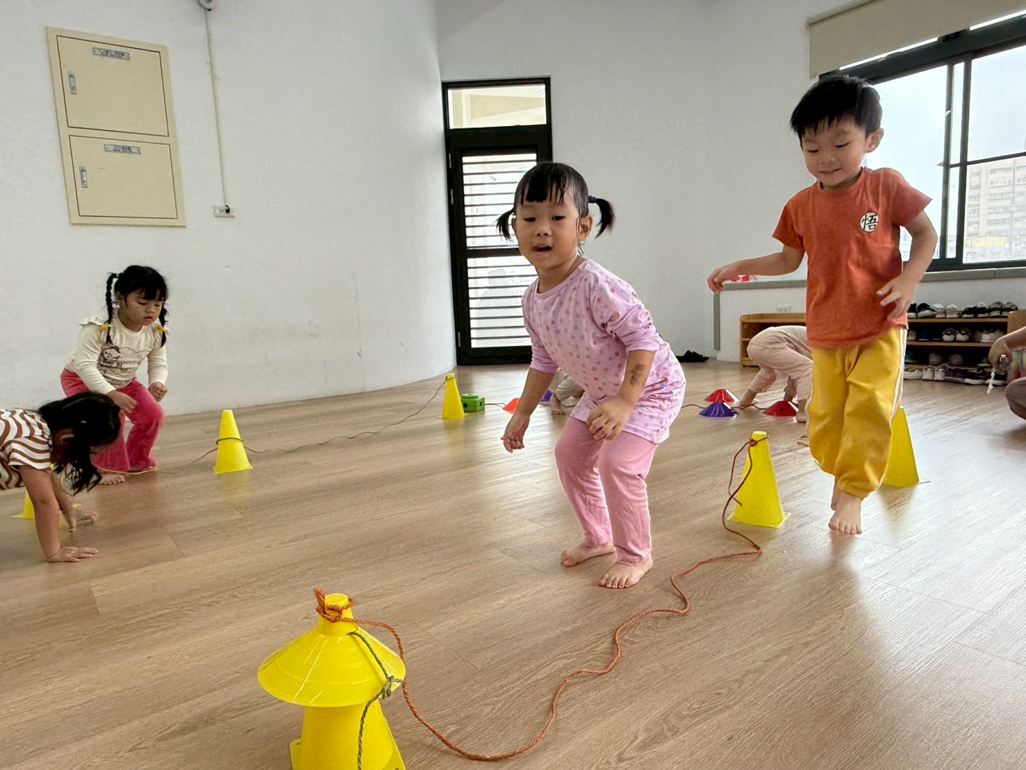 孩子們在三角錐間跑來跑去,繞過去、跳過來,還可以像小蛇一樣爬,玩得開心又刺激!透過這些動作,不只讓身體變得更有力量,還能練習控制自己的動作和平衡感,讓動作更靈活,玩耍中也變得更厲害!