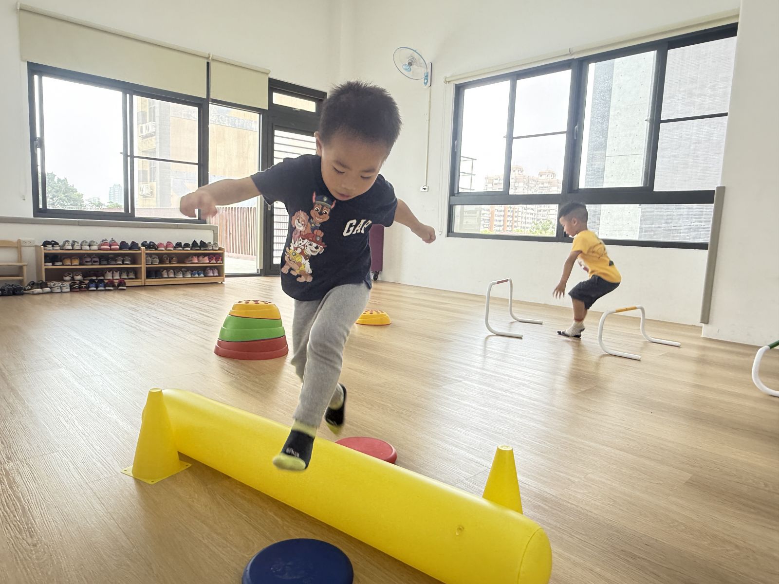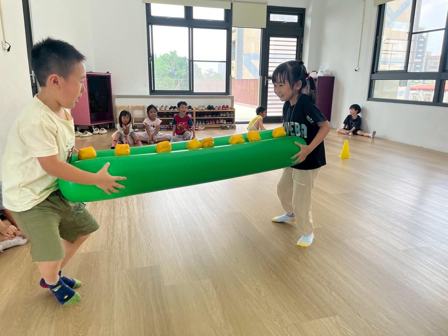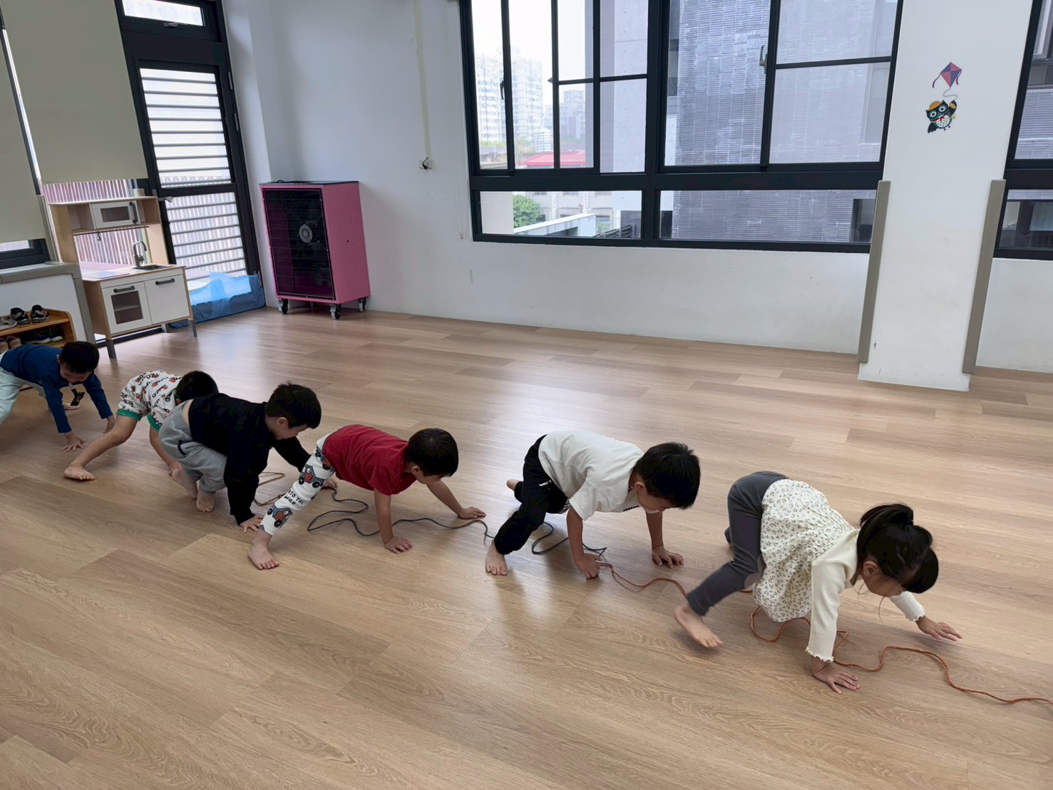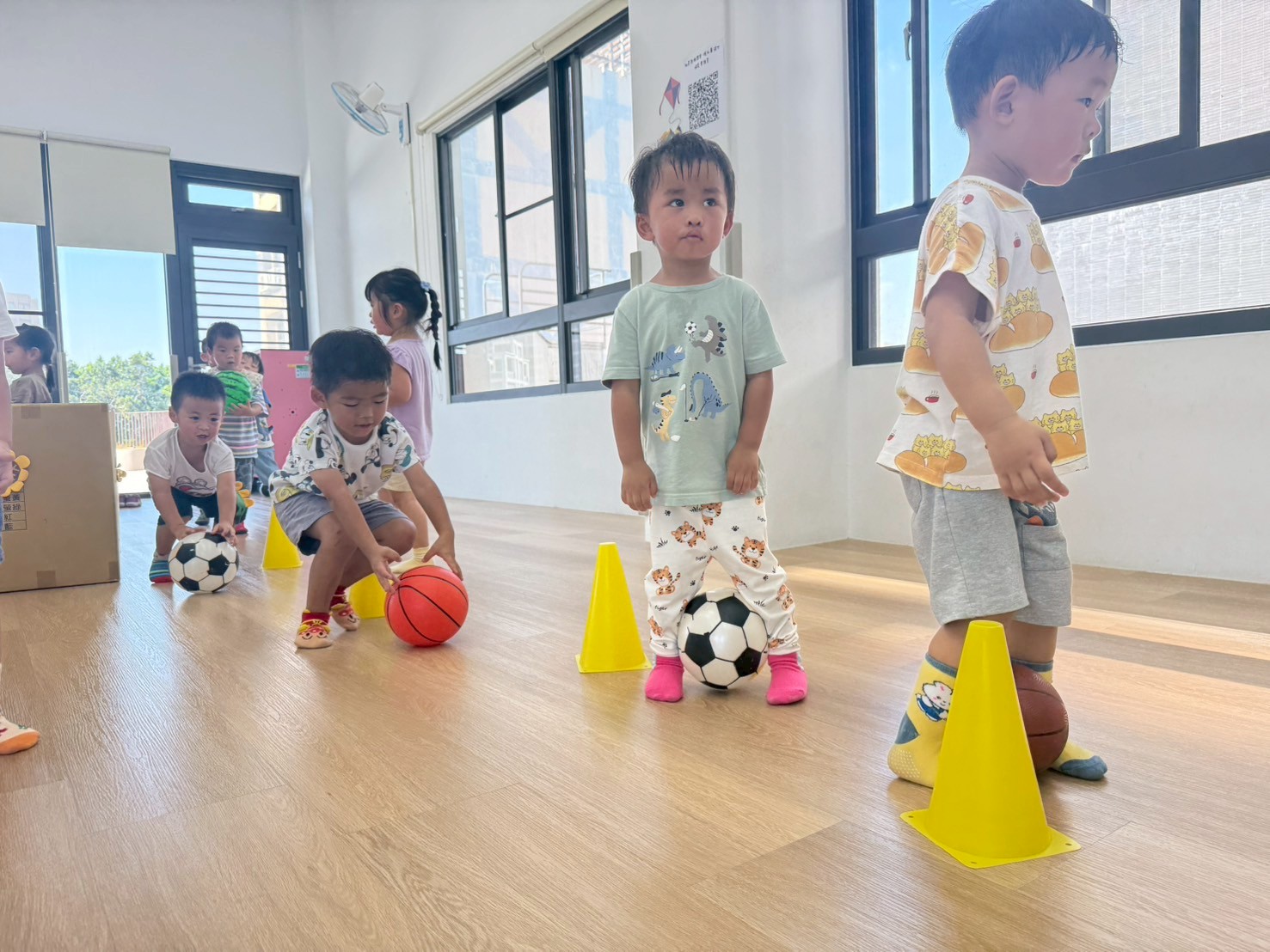 孩子們在三角錐間跑來跑去,繞過去、跳過來,還可以像小蛇一樣爬,玩得開心又刺激!透過這些動作,不只讓身體變得更有力量,還能練習控制自己的動作和平衡感,讓動作更靈活,玩耍中也變得更厲害!