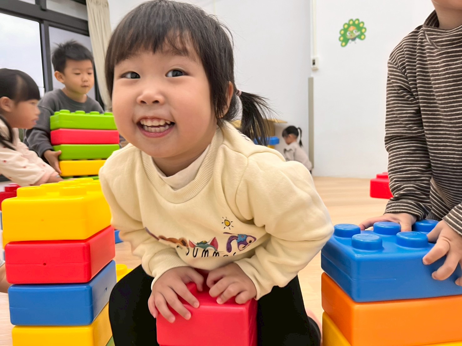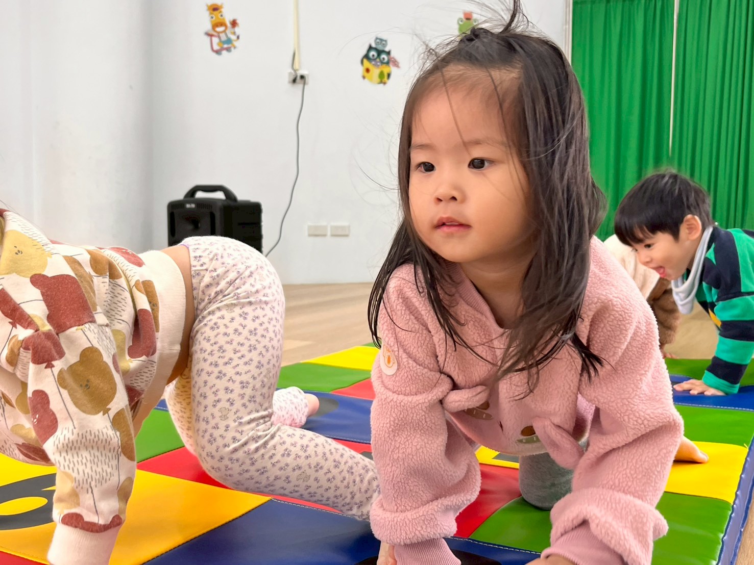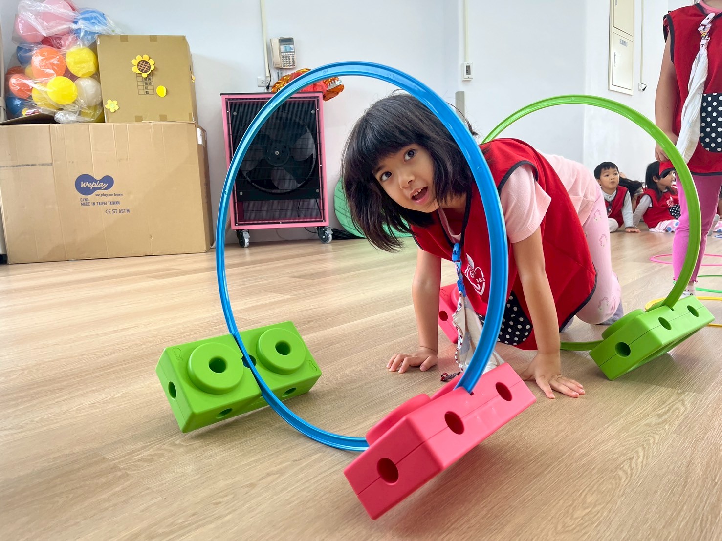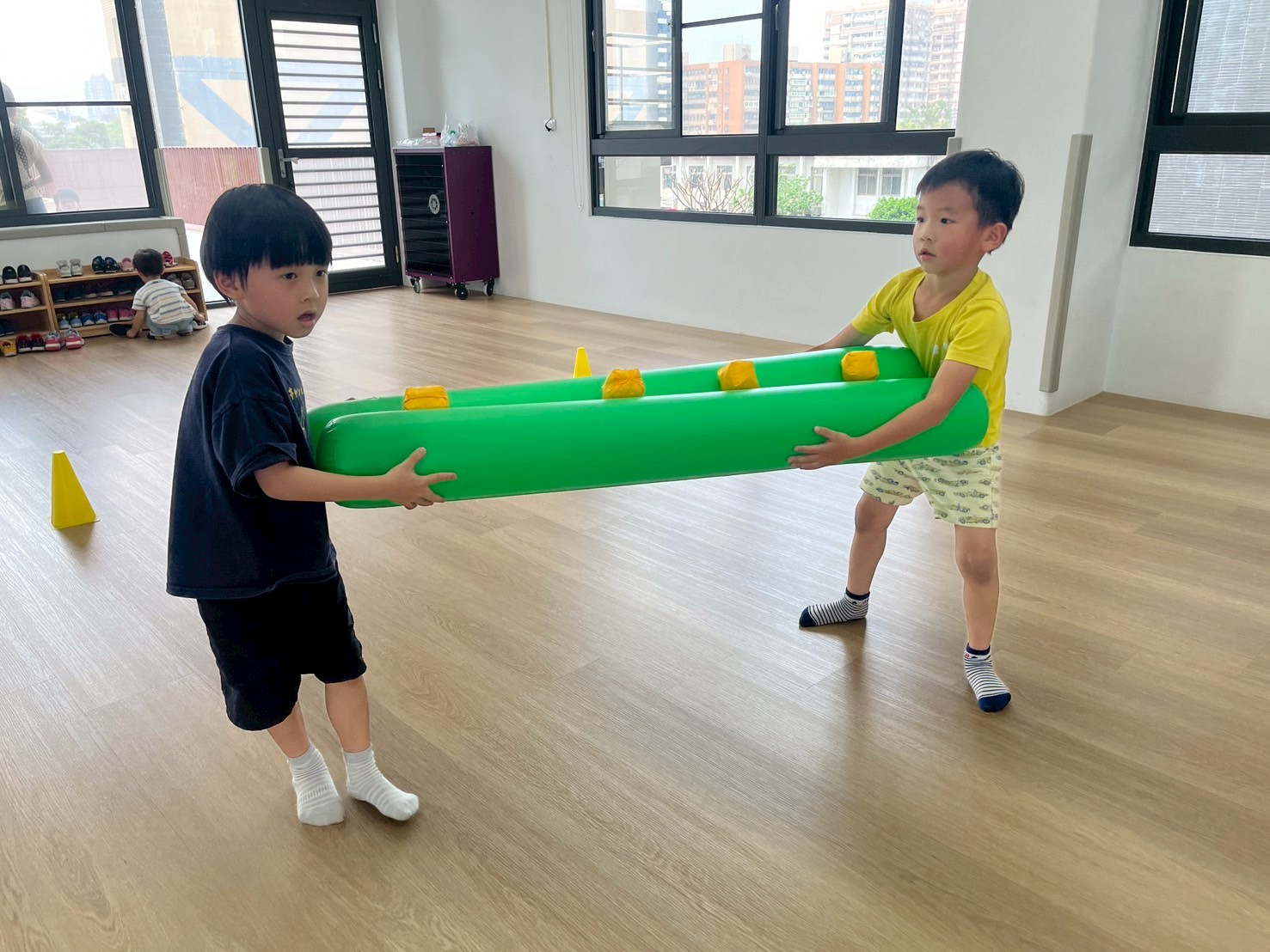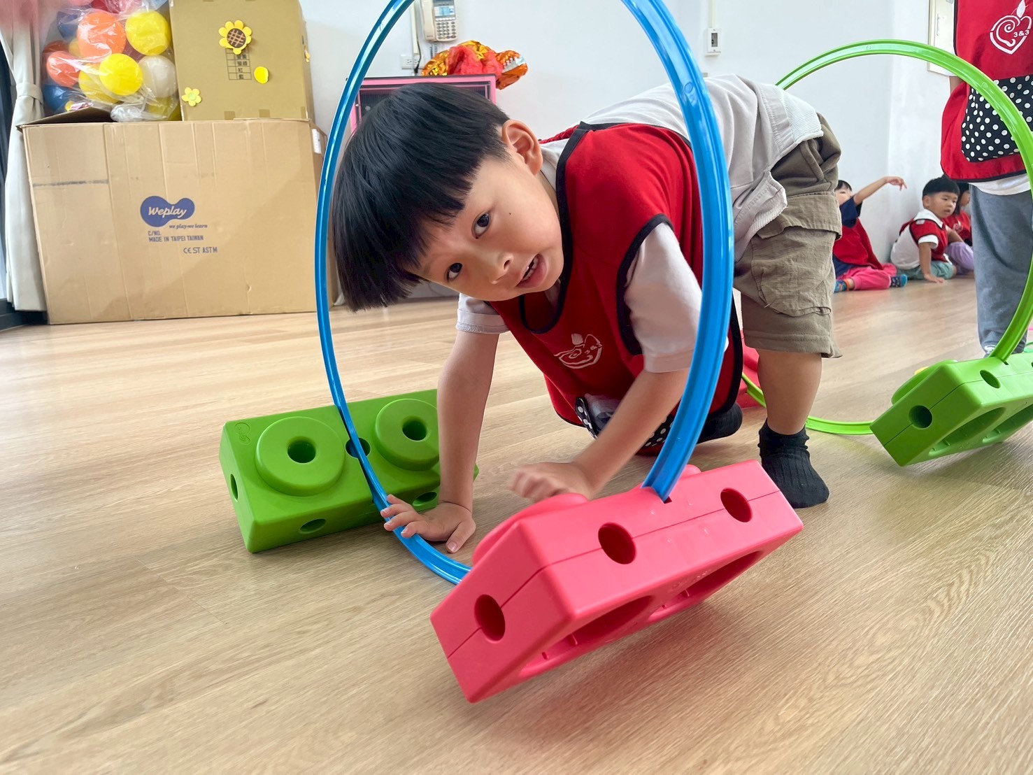 孩子們在三角錐間跑來跑去,繞過去、跳過來,還可以像小蛇一樣爬,玩得開心又刺激!透過這些動作,不只讓身體變得更有力量,還能練習控制自己的動作和平衡感,讓動作更靈活,玩耍中也變得更厲害!