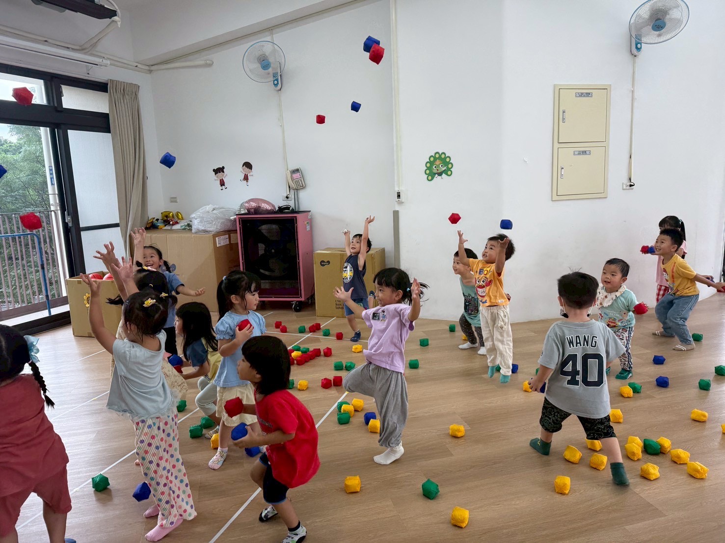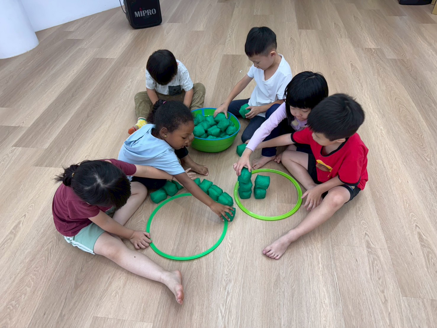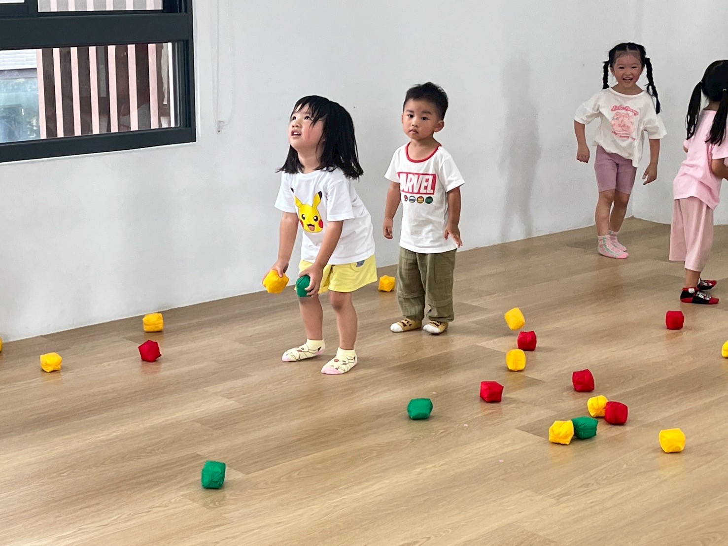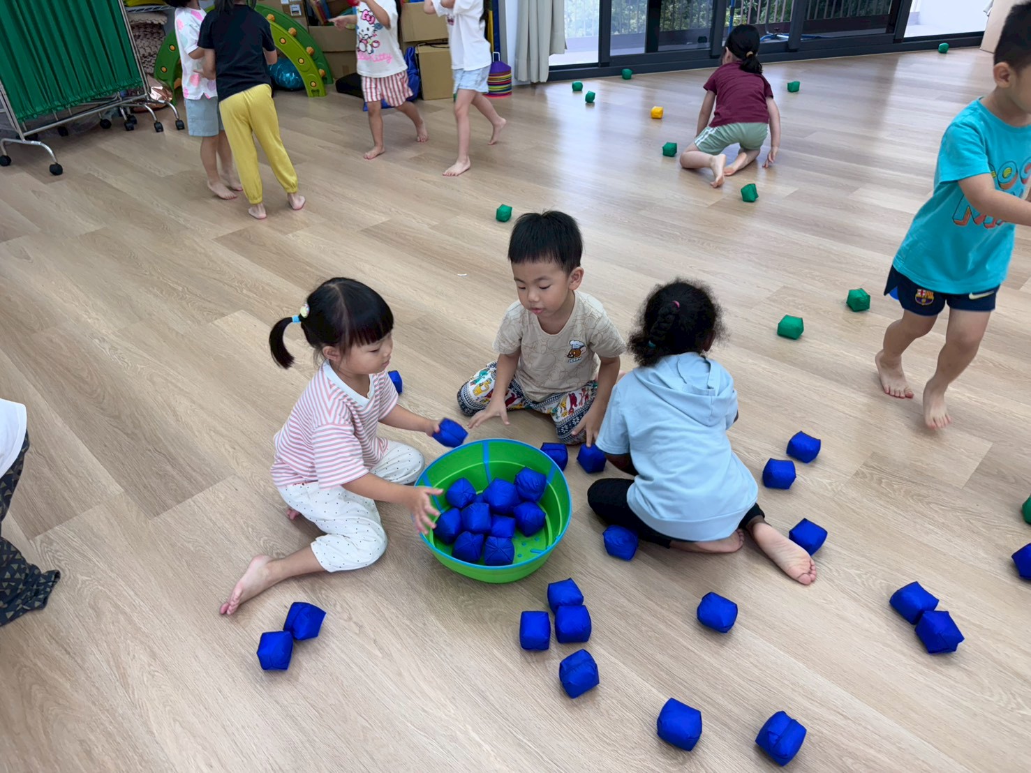 透過分區丟小布球,增強手眼協調與團隊合作,孩子們在歡樂中體驗互動與挑戰的樂趣。