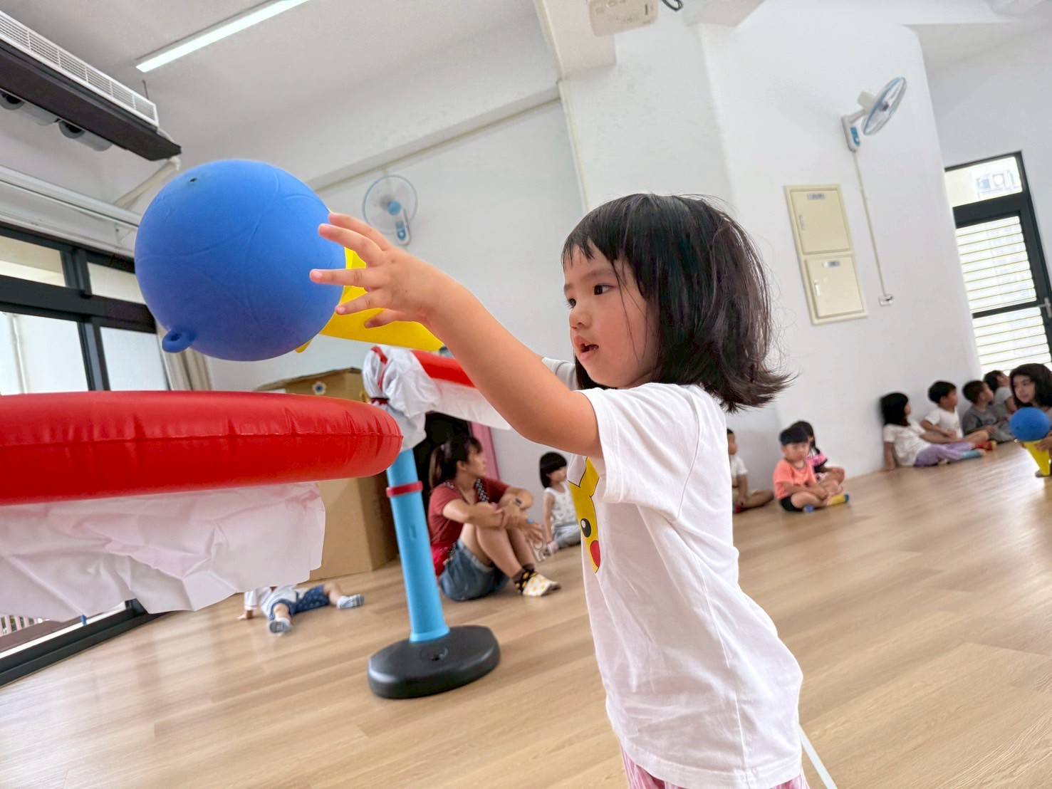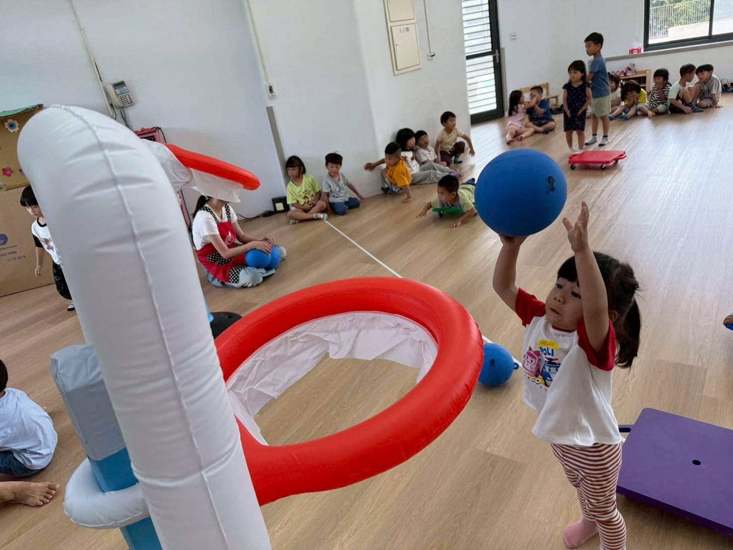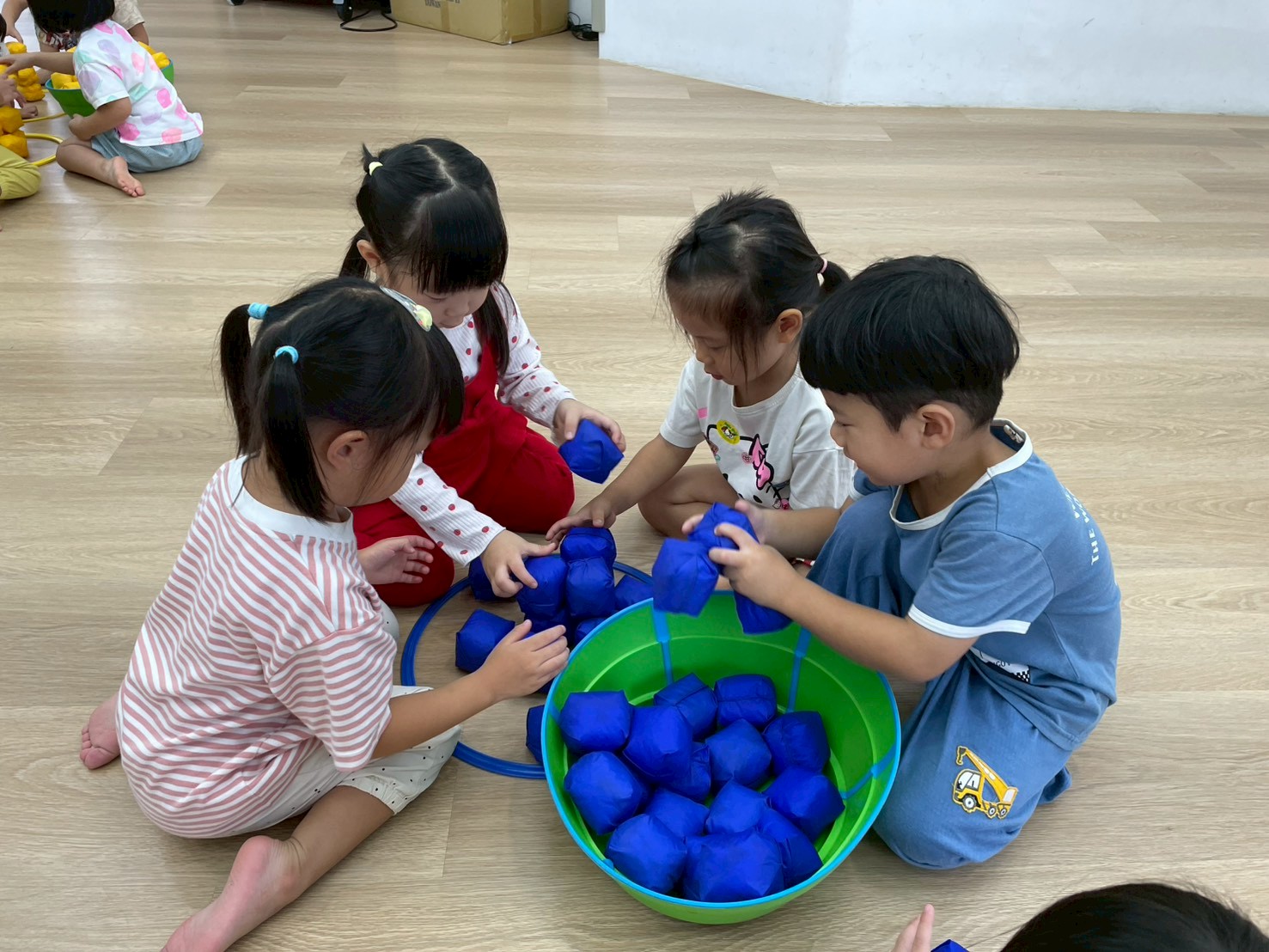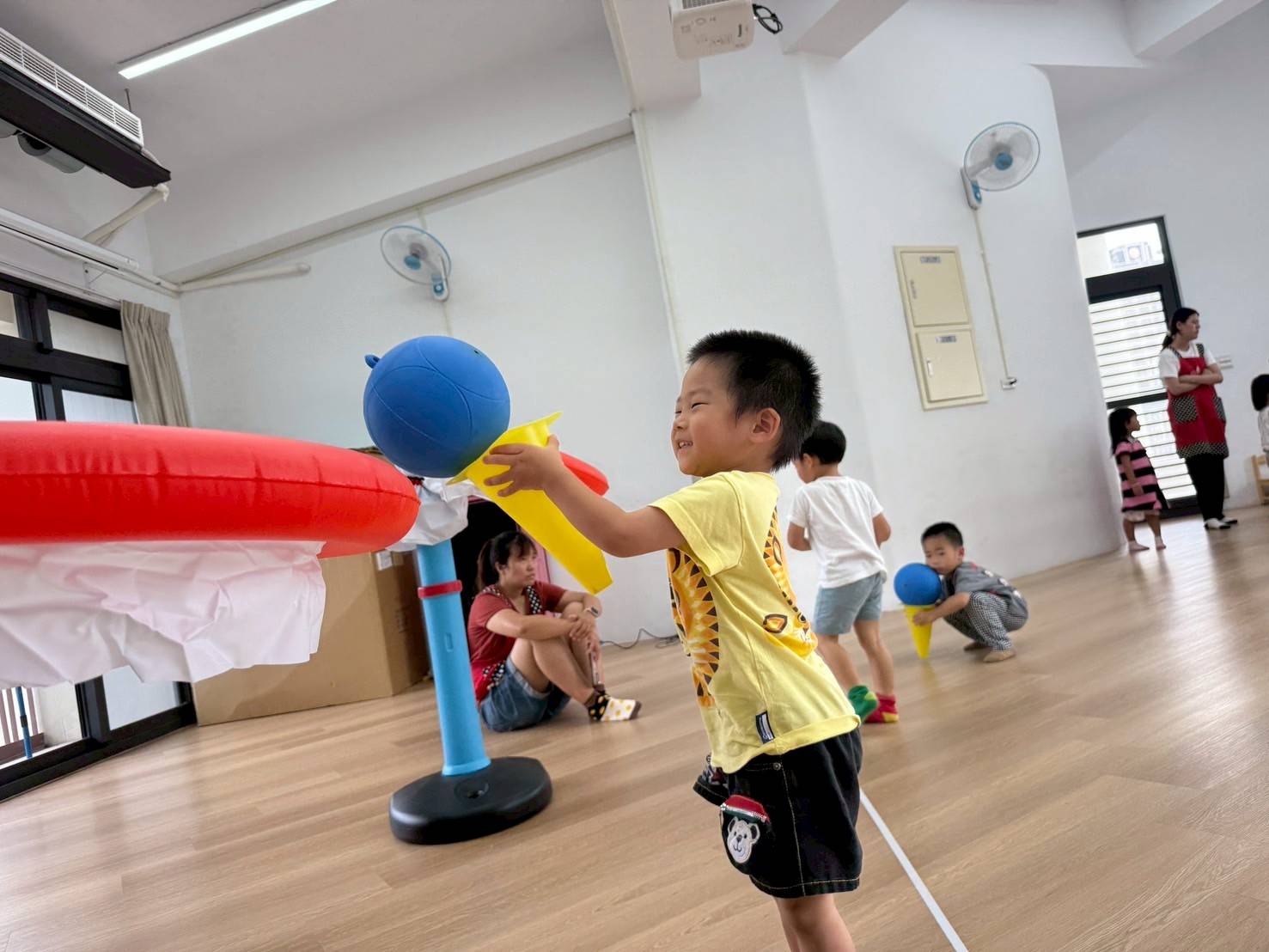 透過分區丟小布球,增強手眼協調與團隊合作,孩子們在歡樂中體驗互動與挑戰的樂趣。