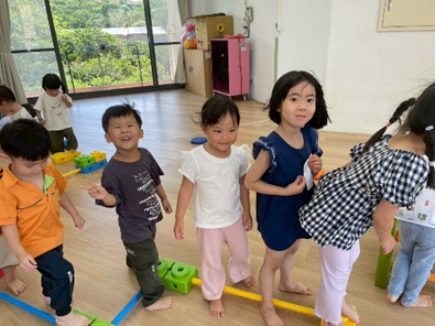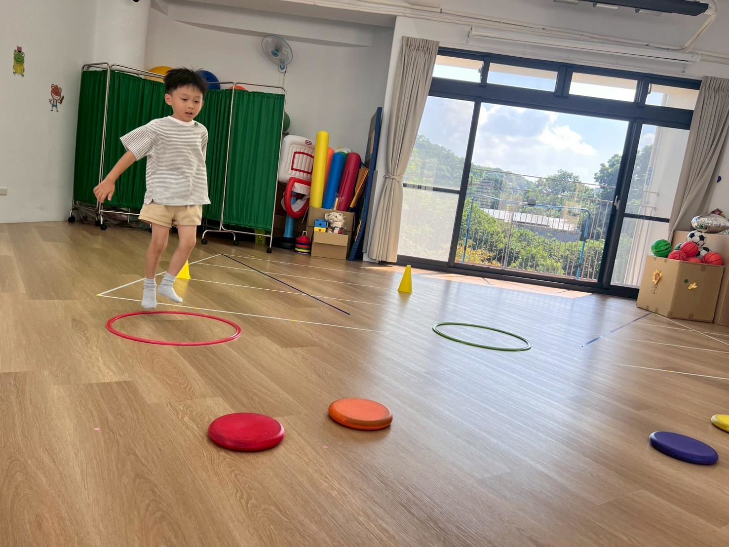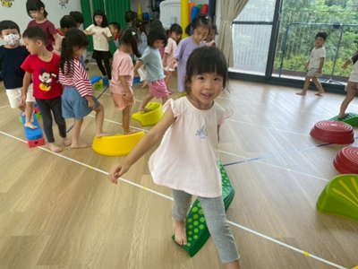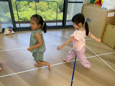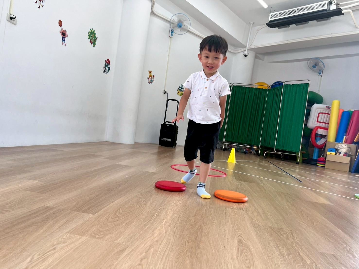 透過繞行、跳躍等不同的活動方式,除了訓練孩子的反應力及專注力外,也可增加孩子全身的靈活度及協調性