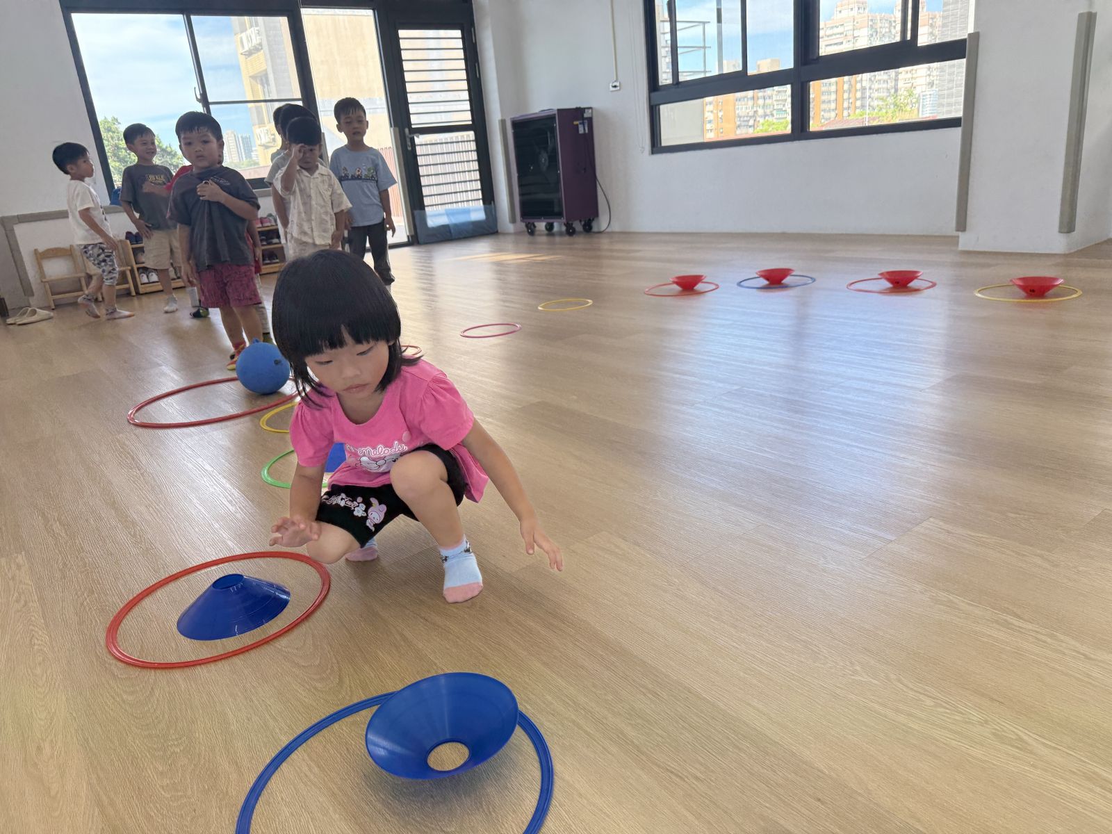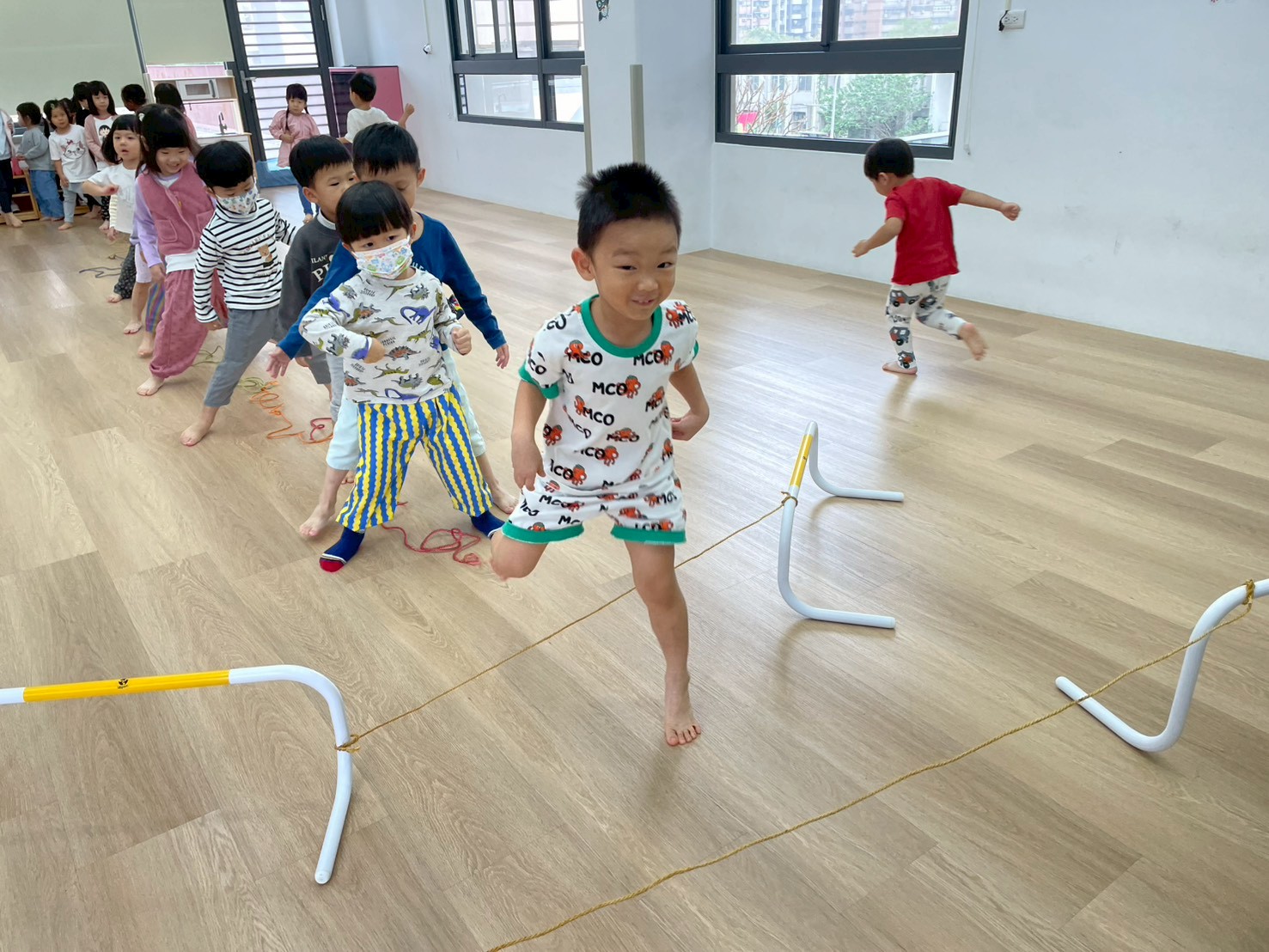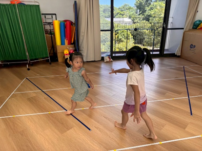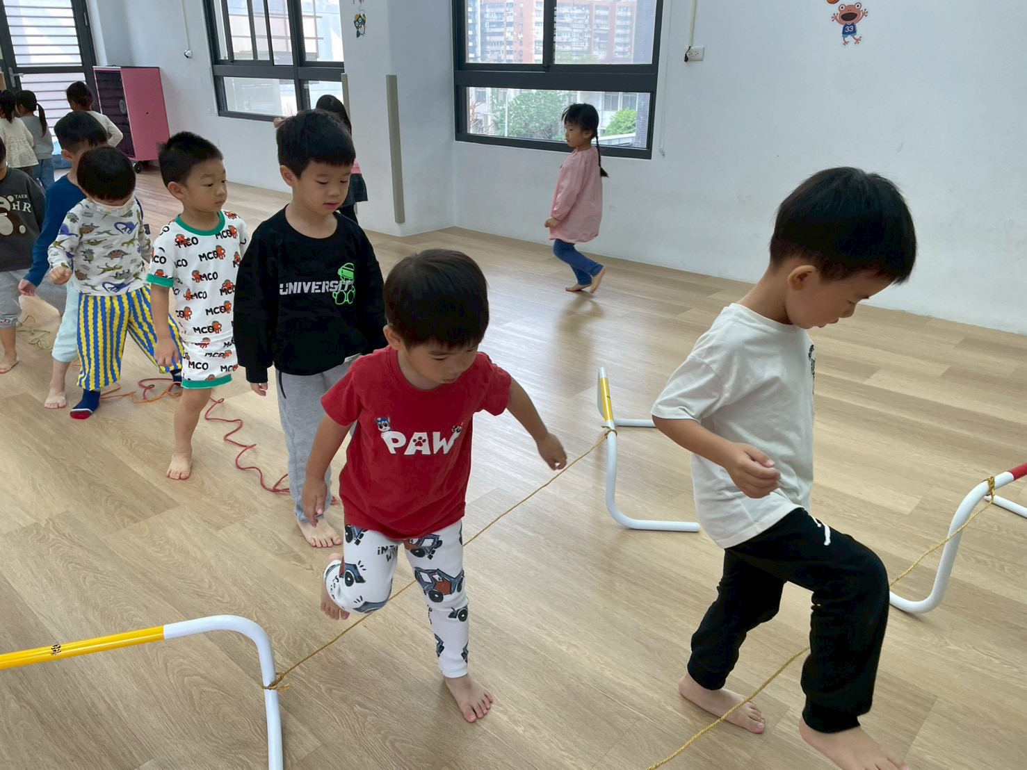 透過繞行、跳躍等不同的活動方式,除了訓練孩子的反應力及專注力外,也可增加孩子全身的靈活度及協調性
