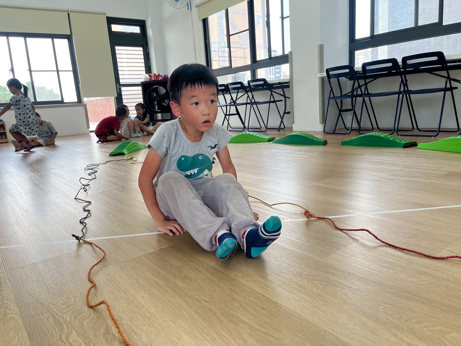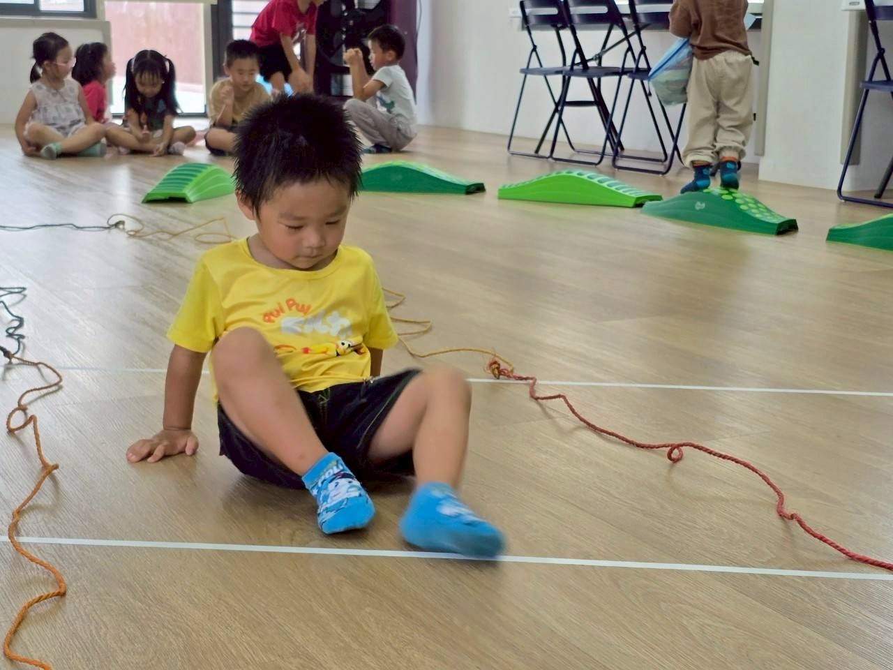 孩子們透過繩索遊戲進行走、跳、爬等動作,不僅增進下肢肌力與協調能力,也提升身體的平衡感與動作控制。