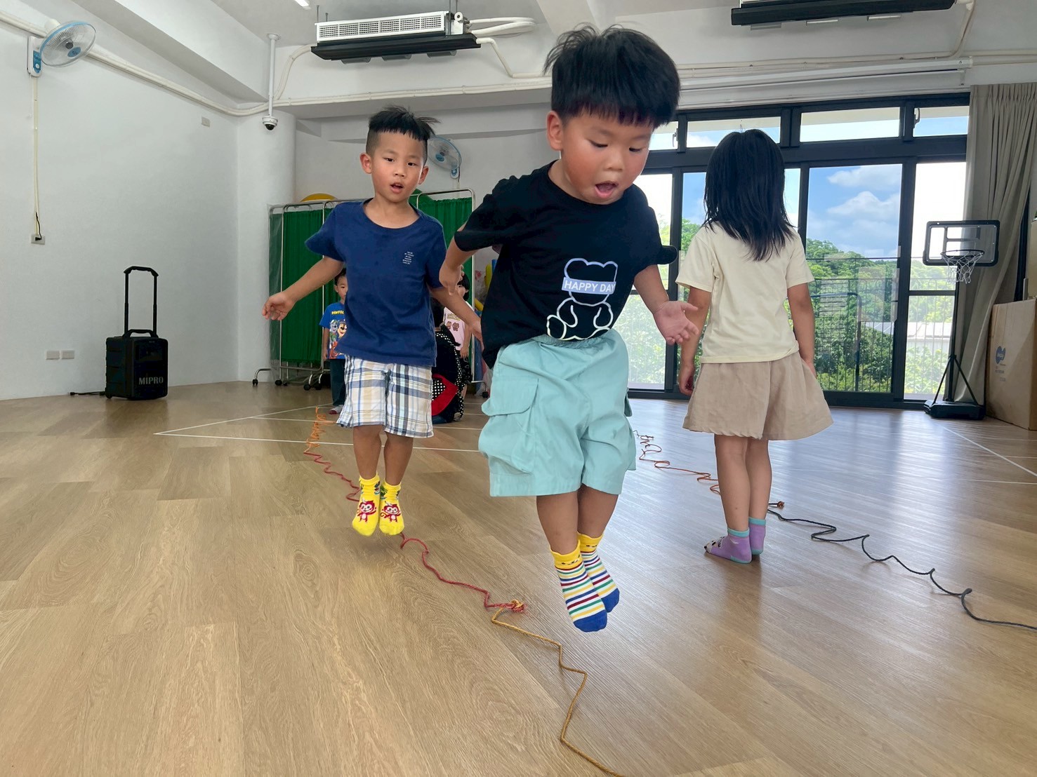 孩子熟悉了繩子的狀態,透過跳、跨、坐等不同的動作,去進行活動,除了增加孩子的專注力,也訓練孩子跳躍及爆發力,並提升敏捷度及協調性。