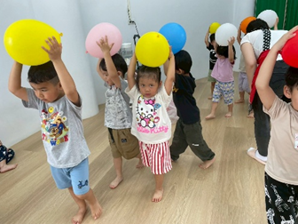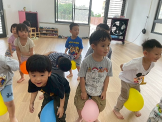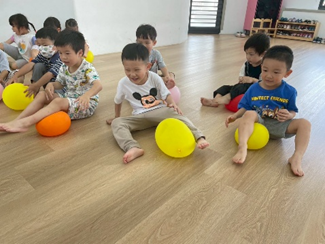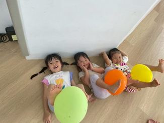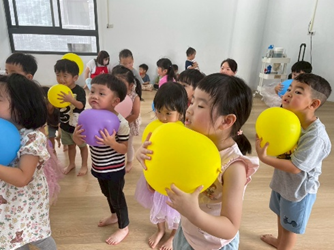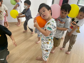 孩子們用身體各個部位挑戰夾氣球的任務,像是用下巴、腳或臉頰夾住氣球,過程中大家小心翼翼、不讓氣球掉下來,充滿挑戰及樂趣喔!