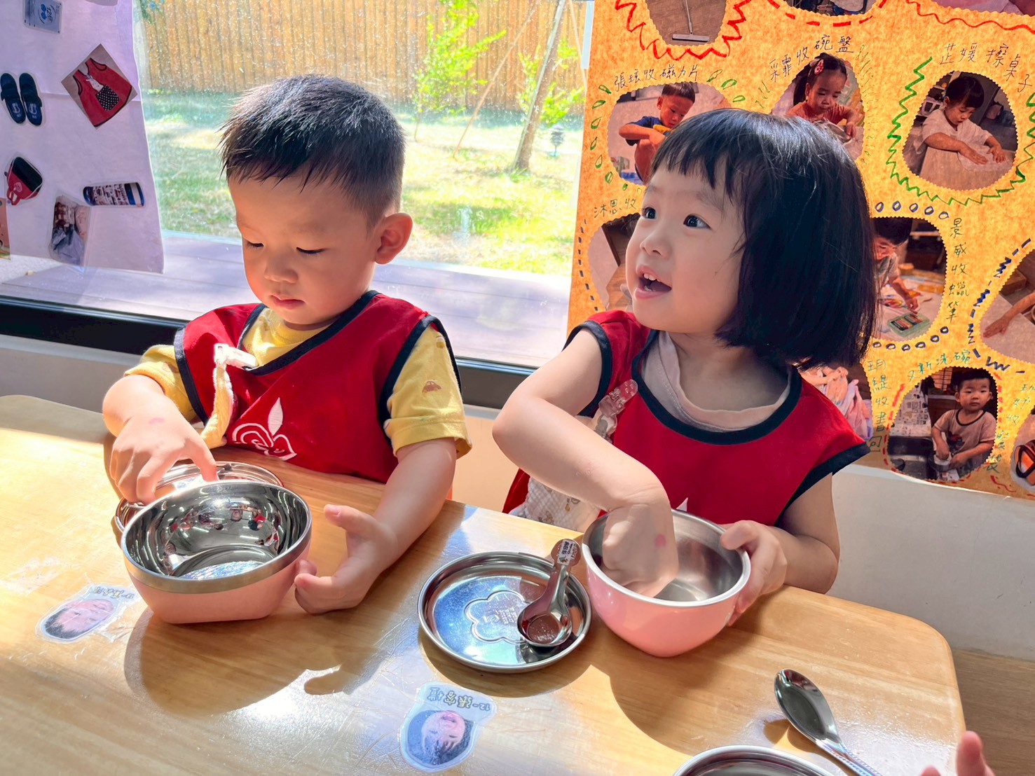 將用餐時間融入生活自理練習,孩子能依照自己的需求取用餐點,過程不僅能培養手眼協調與控制能力,也能逐步學習獨立與自我照顧。