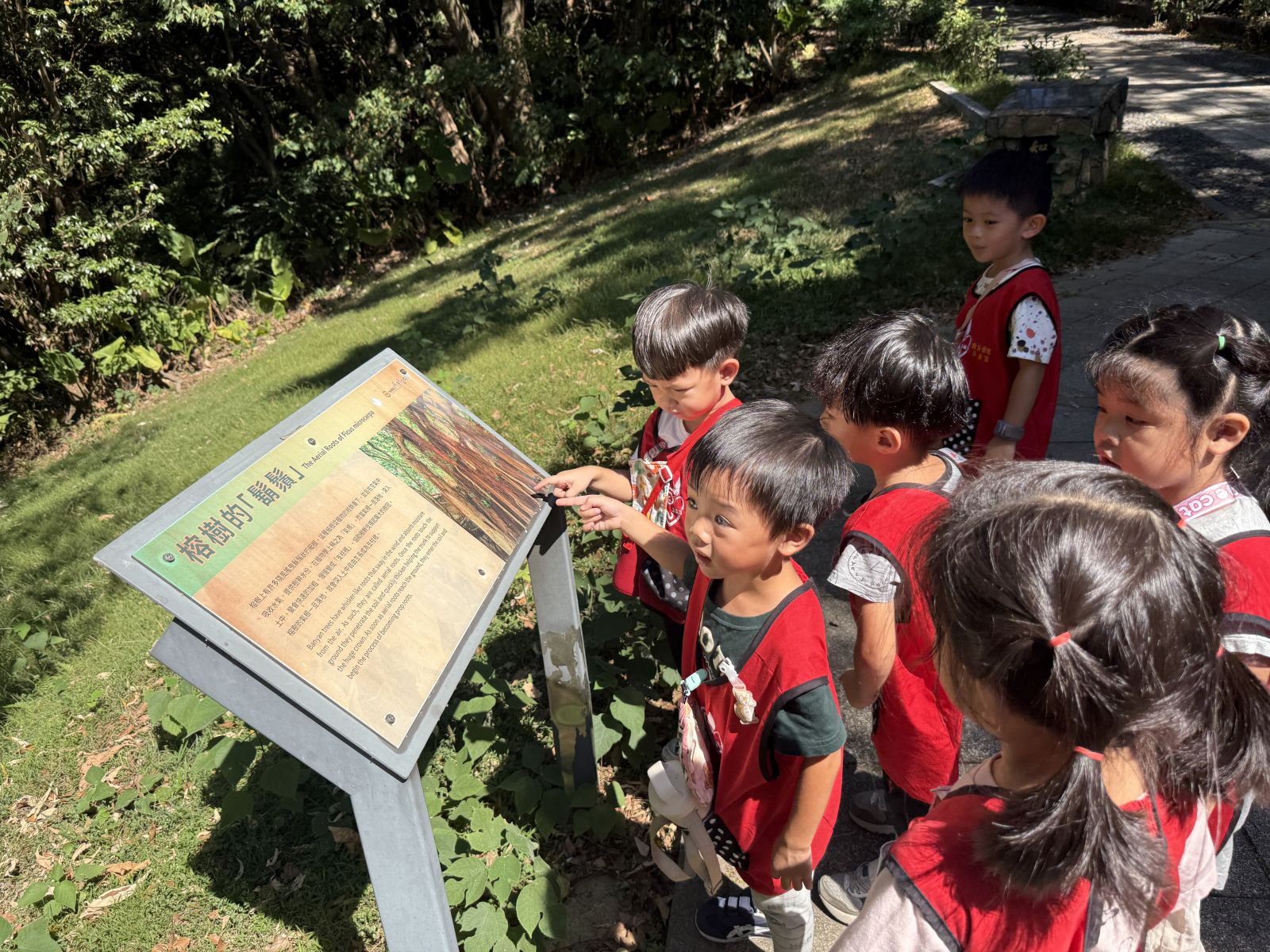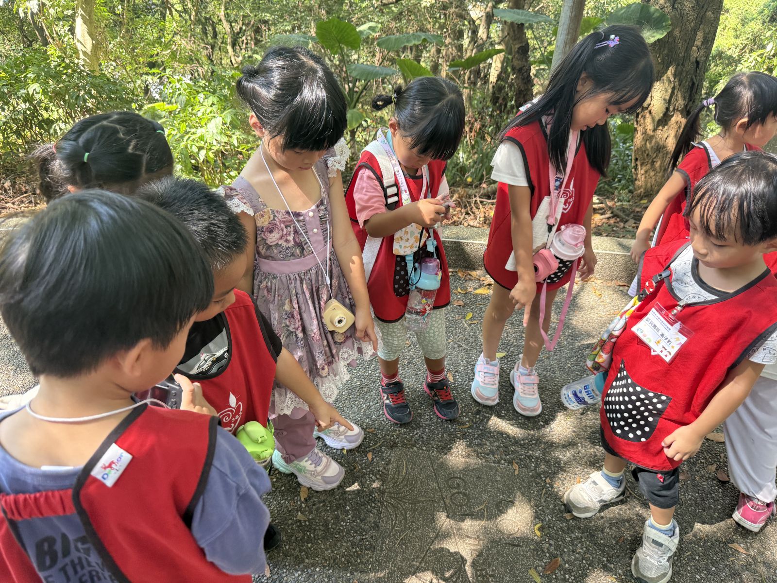 我們認識了各個不同的步道後,開始進入虎頭山的步道探查,分組進行並且讓孩子帶著相機,將看到的、有趣的拍下來,回到學校後我們再進行討論,看看兩個步道有什麼差異,也讓孩子們一起欣賞自己拍下的照片。