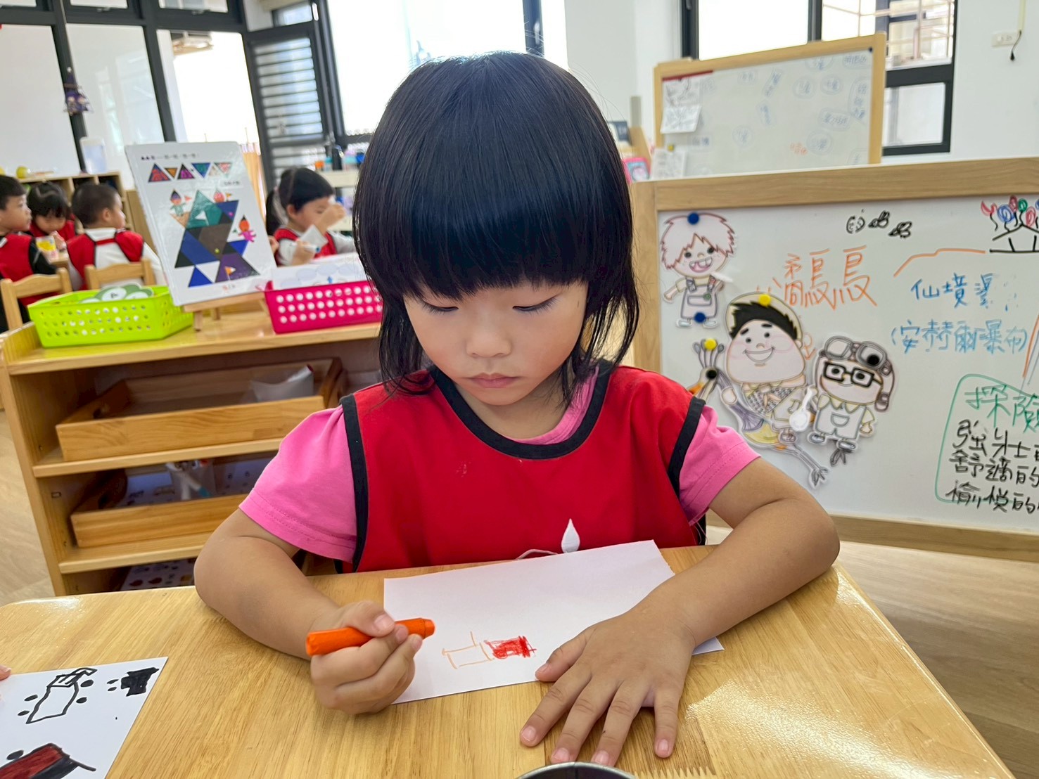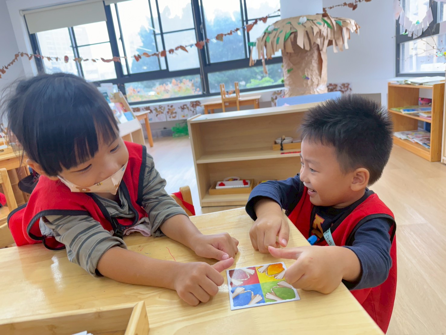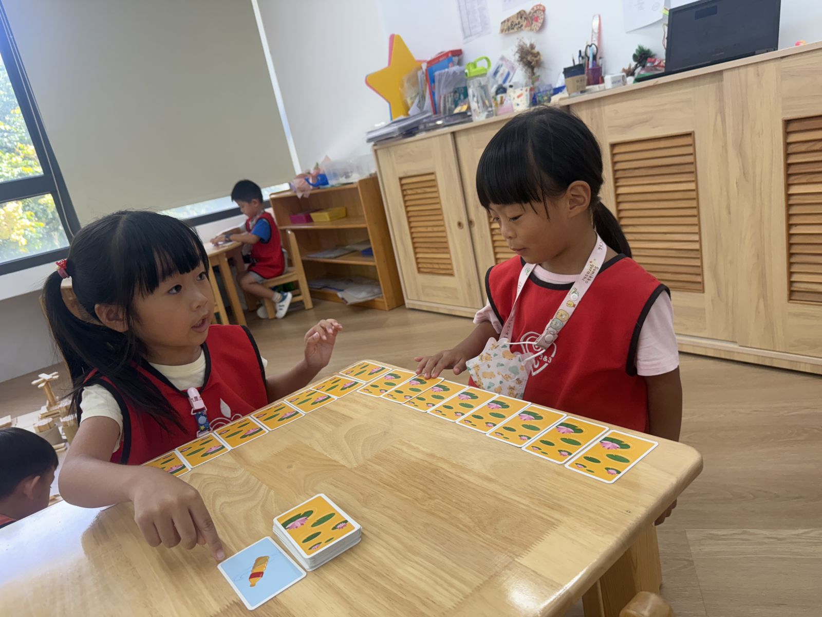 數學區開始增加了任務挑戰,中班和大班的任務內容有些不同,依照孩子的年齡和能力,進行任務的難易度調整,除了任務挑戰外,孩子們也透過桌遊和同學一起合作,培養孩子的耐心與專注力