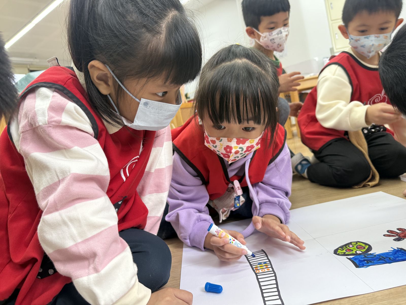 除了用眼睛看、耳朵聽,這次讓孩子們實際的去將自己觀察到的畫出來,透過寫生的活動,孩子們能夠更仔細的去觀察自己所發現到的,第一次的寫生大家都感到新奇,回學校後,也能大方分享自已所畫的是什麼喔!
