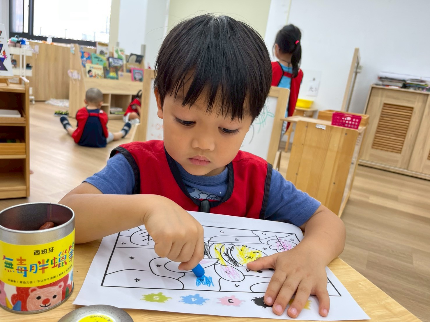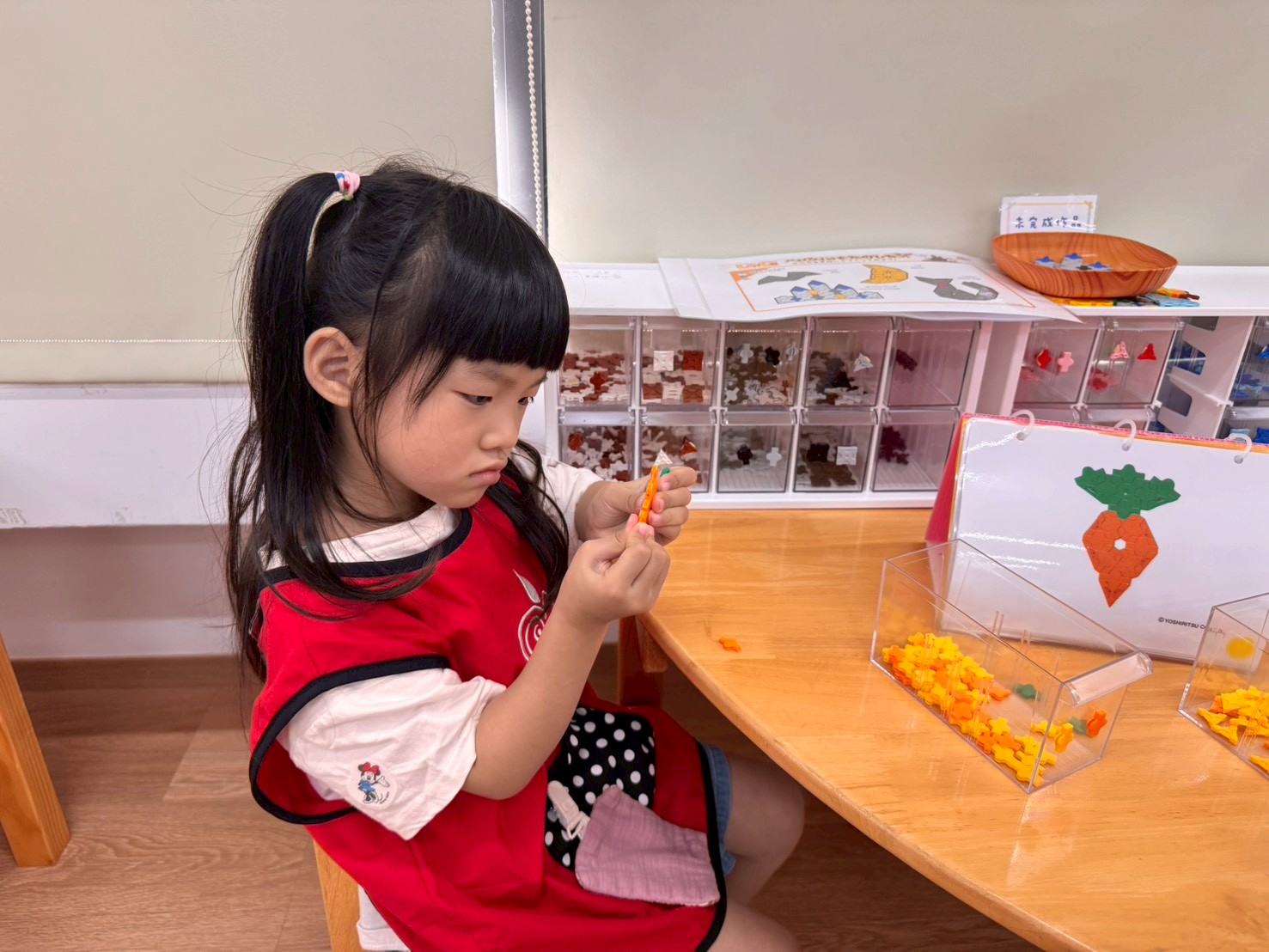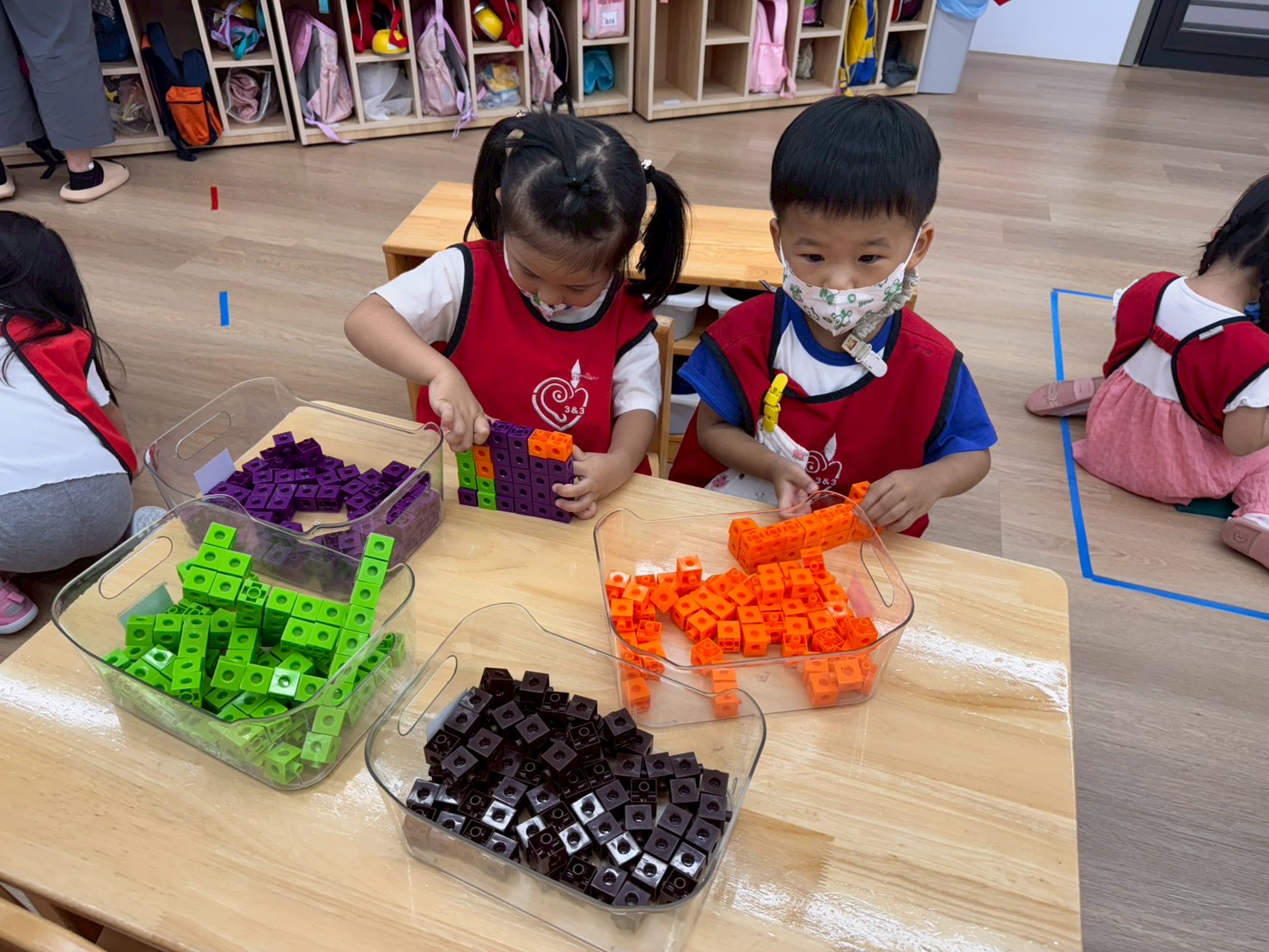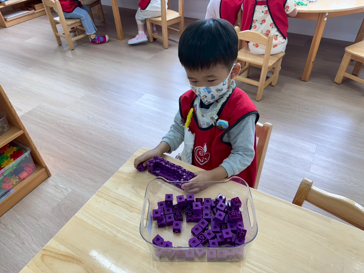 透過教具操作認識數字與數量、顏色、形狀與大小,發展分類、排序、比較等初步邏輯思維,培養專注力與觀察能力。