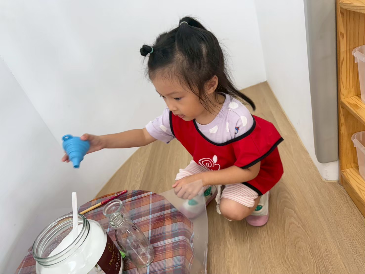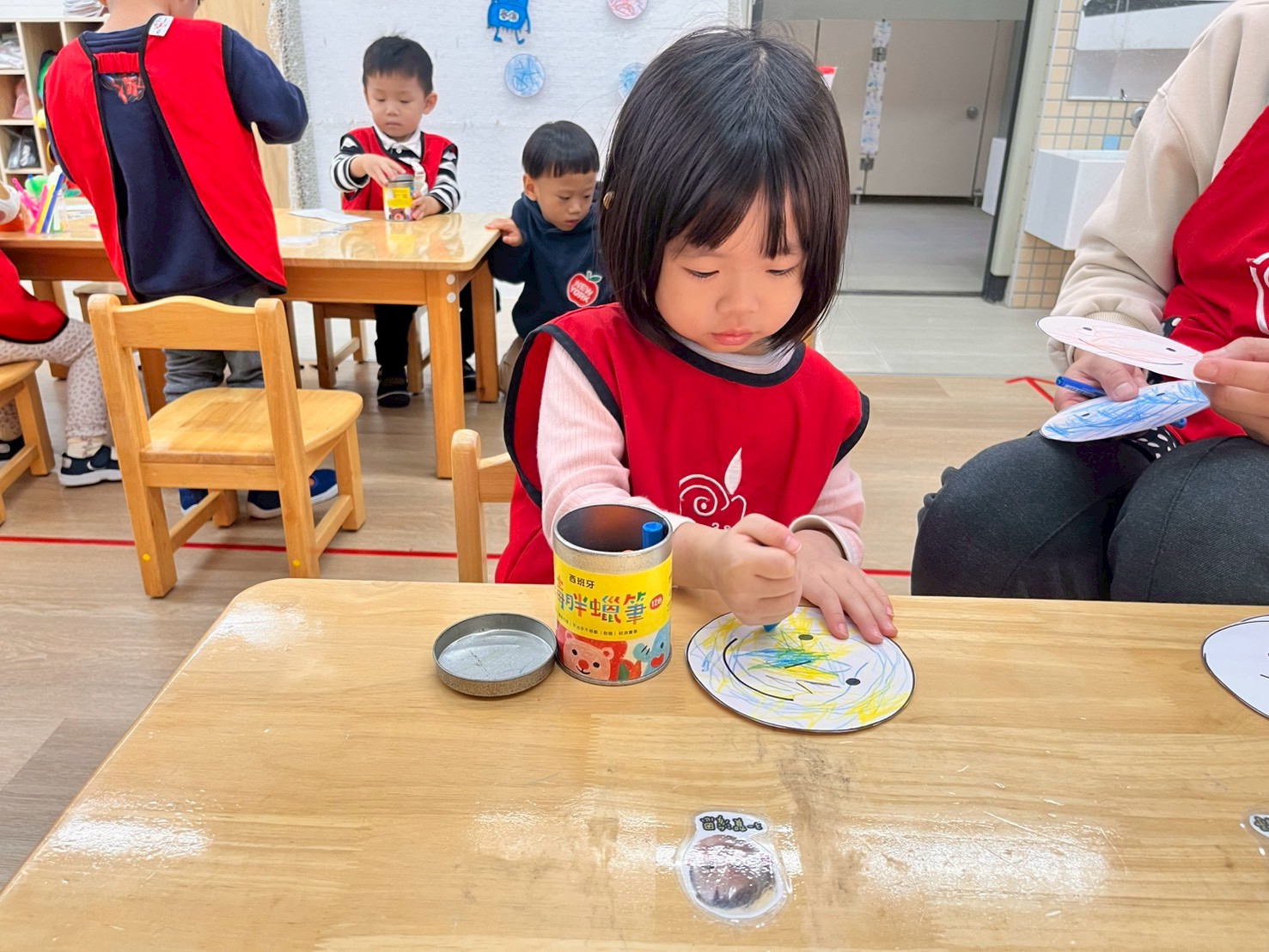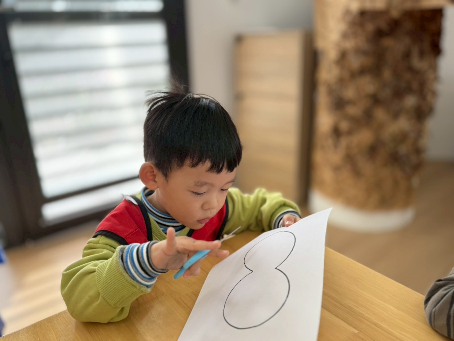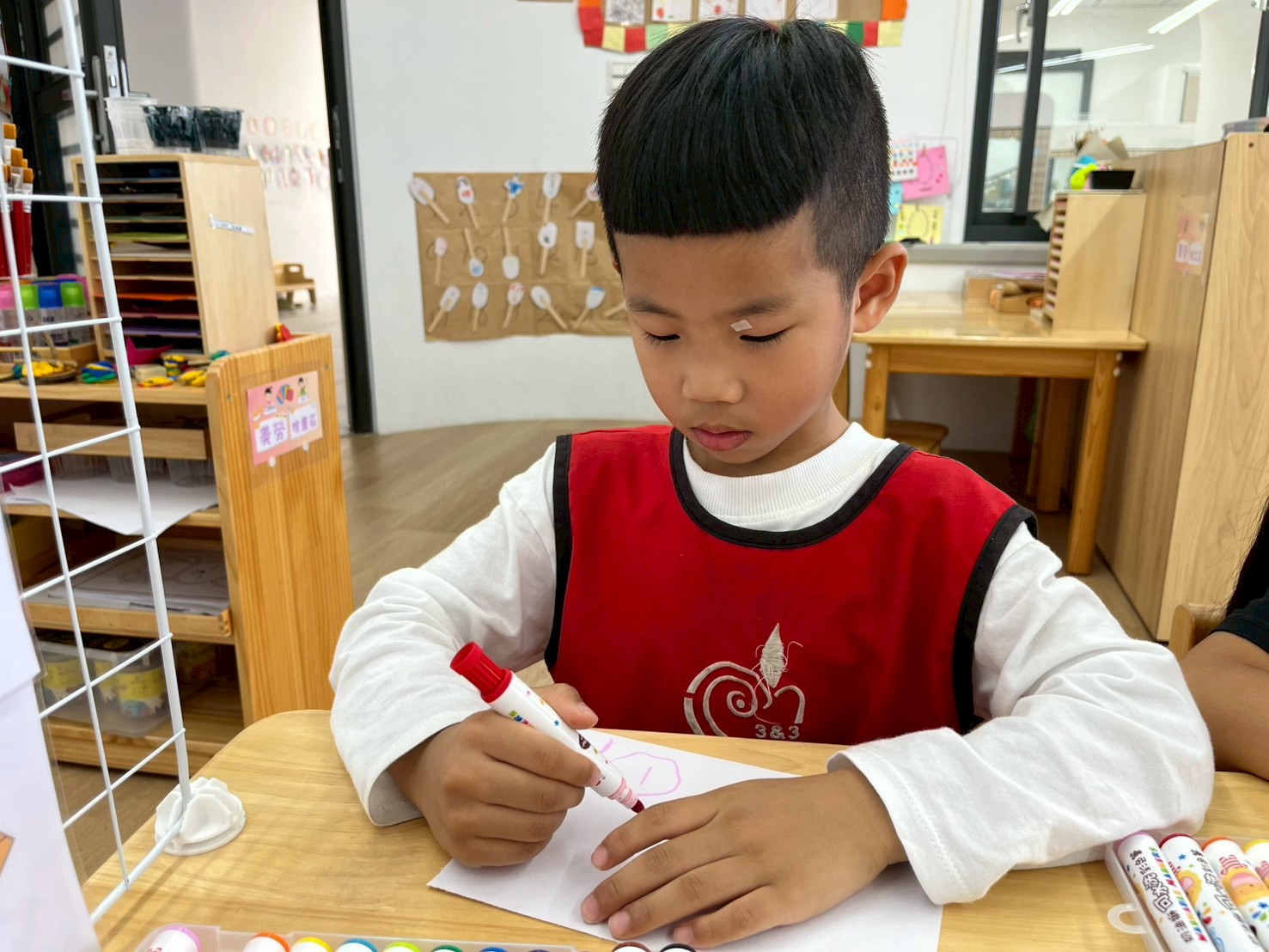 這個月在美勞區,有看到孩子們進行很多步一樣的嘗試,不管是玩鹽瓶、串珠、剪紙等等都操作的十分認真。