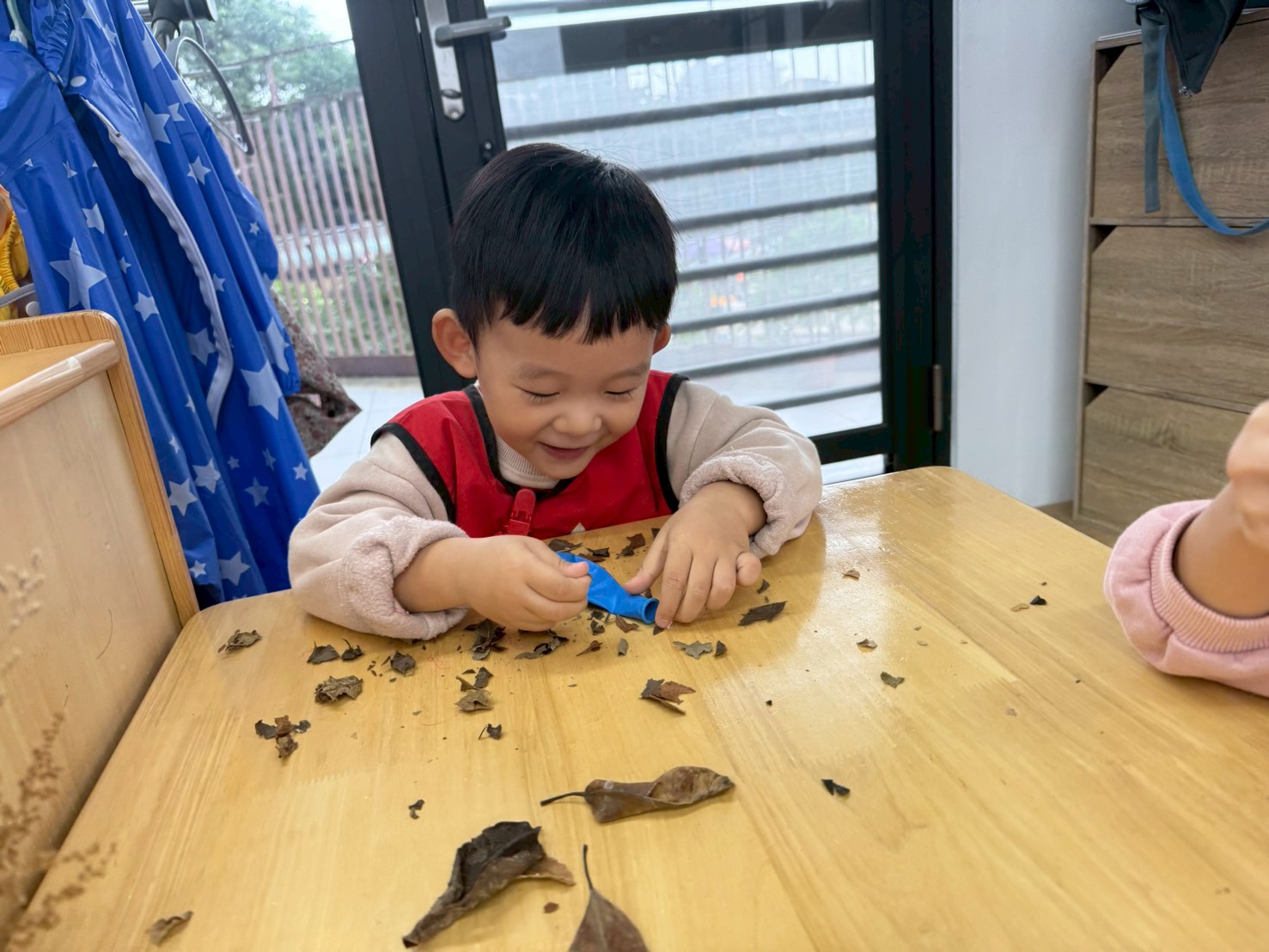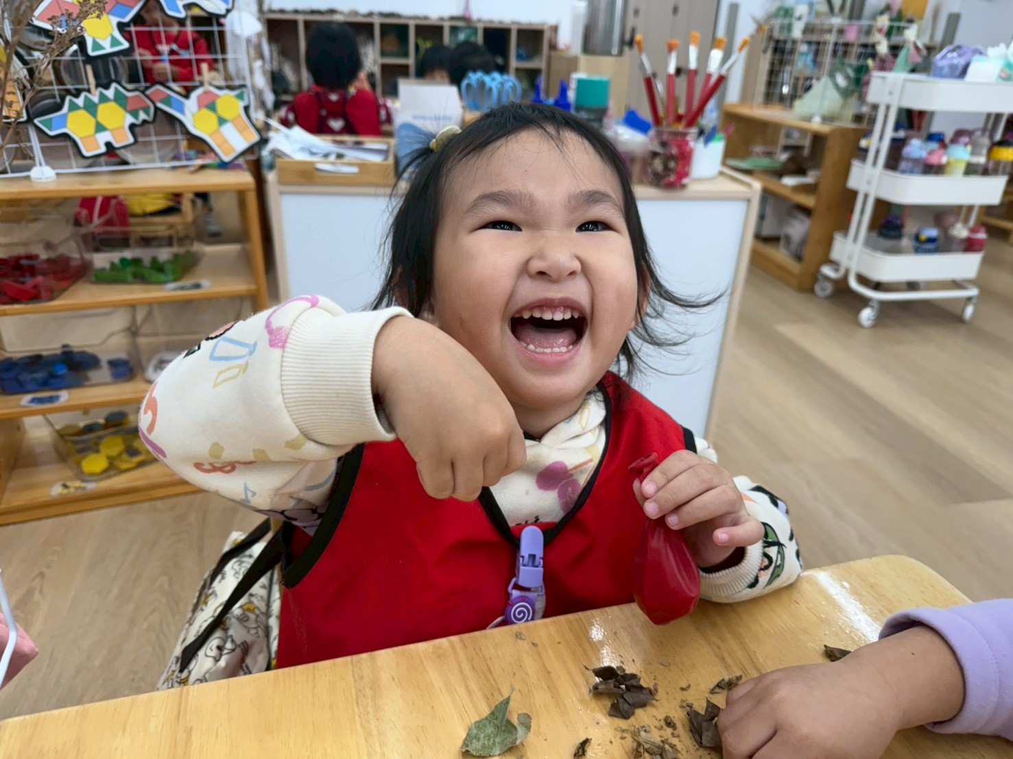 孩子們將化身小小環保尖兵,一起到戶外撿落葉,學習愛護環境、保持清潔,並在活動中練習觀察力與合作精神。