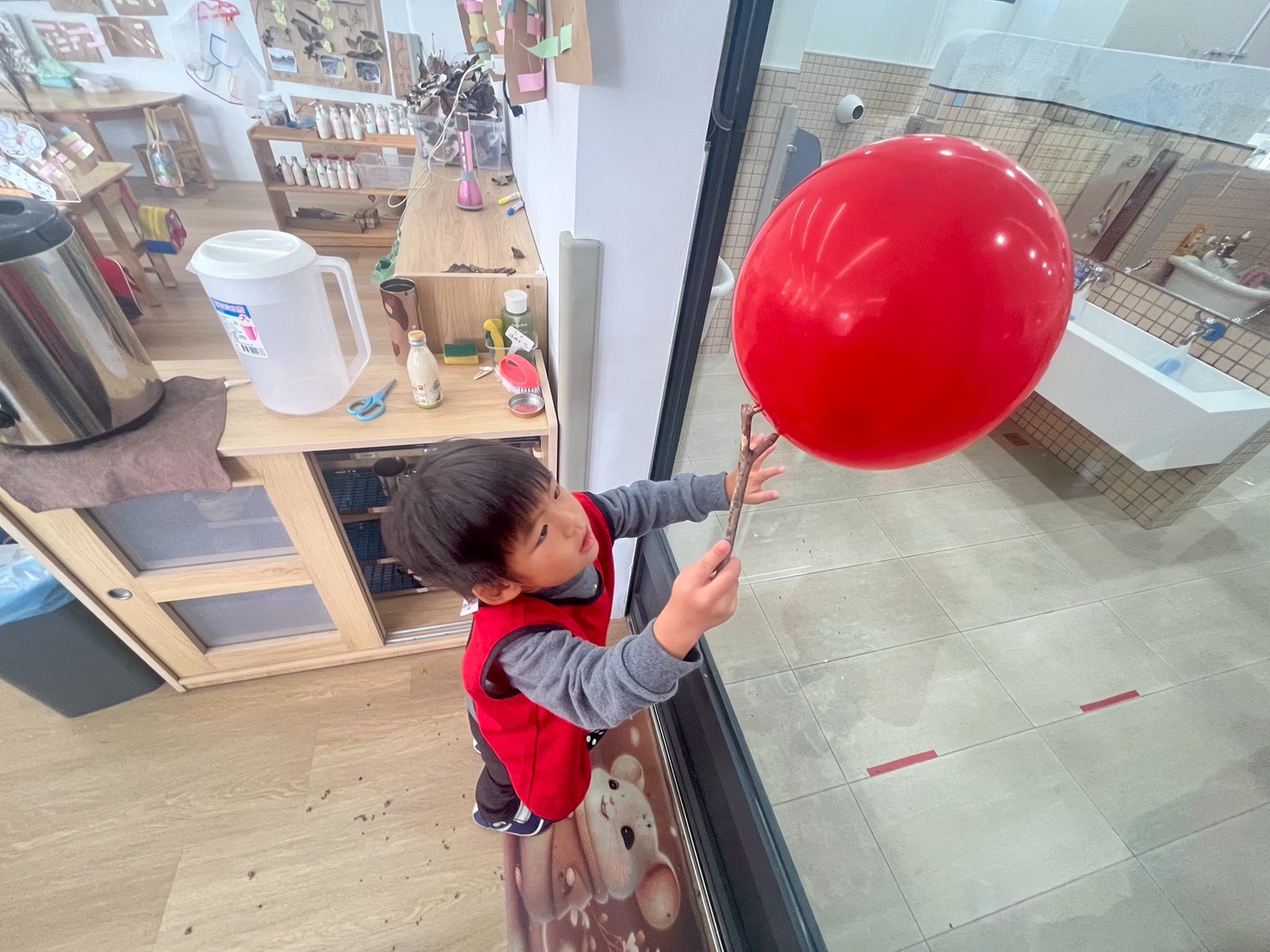 之前利用樹葉進行創作,這次讓孩子將樹葉加入氣球,看看會有什麼不一樣的變化,孩子可以藉由自己的想法挑選不同的工具戳破氣球。