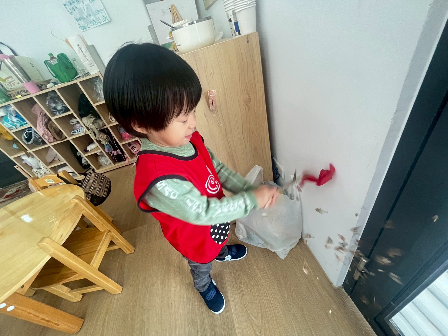 透過打掃教室的活動,孩子學習感謝每天陪伴他們學習與遊戲的環境,動手整理也讓孩子更有責任感與參與感。