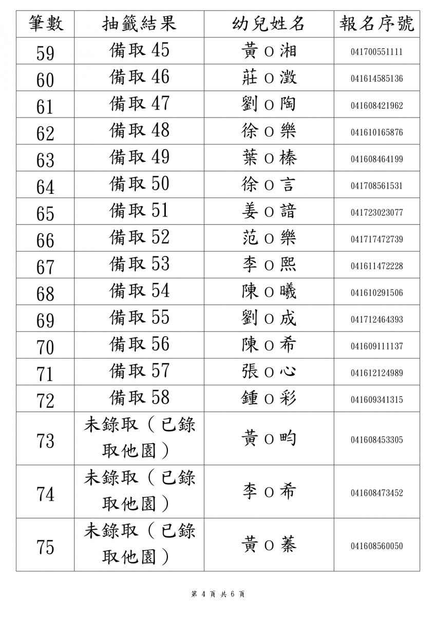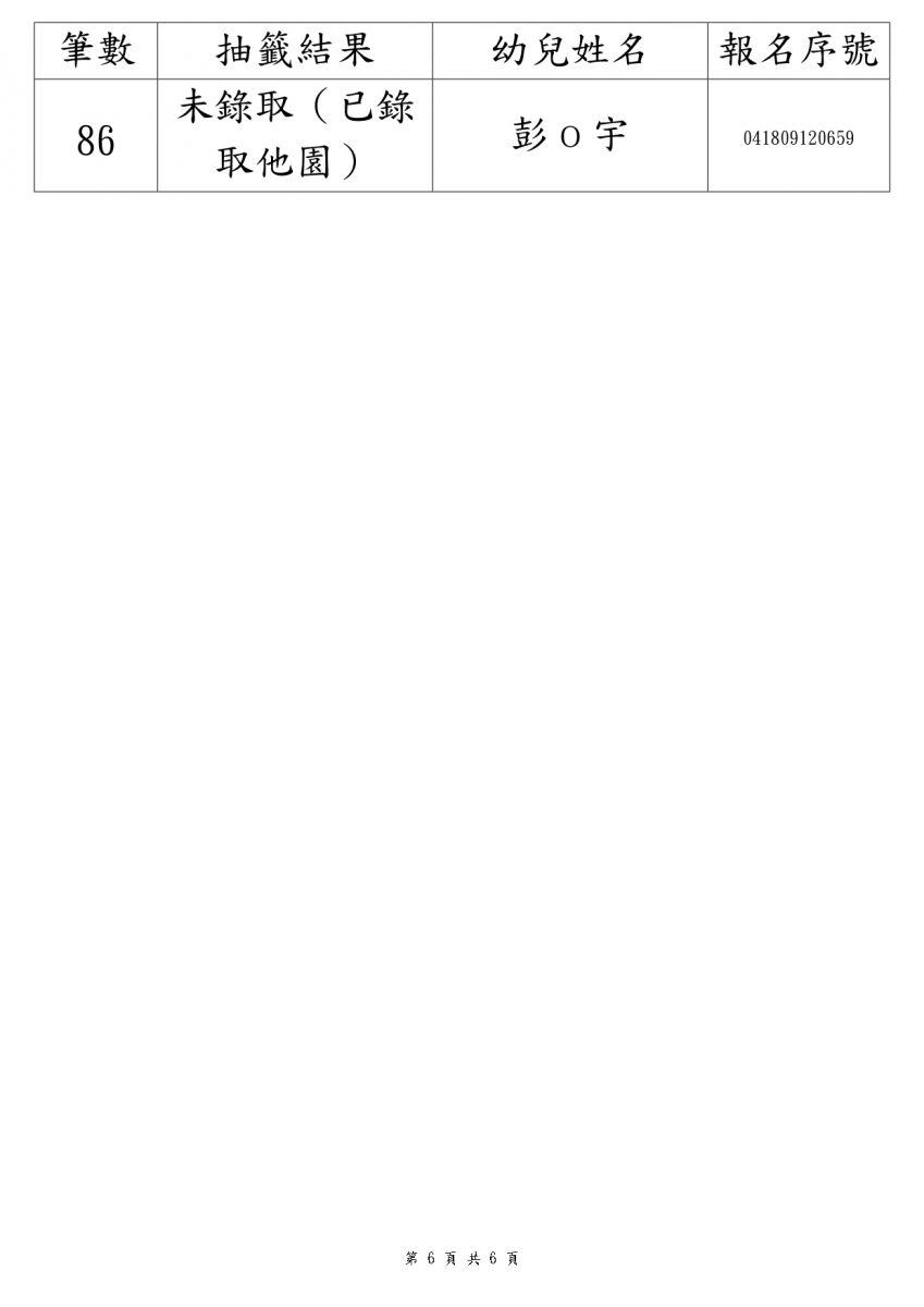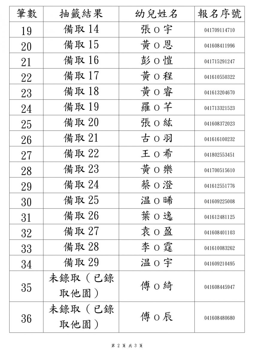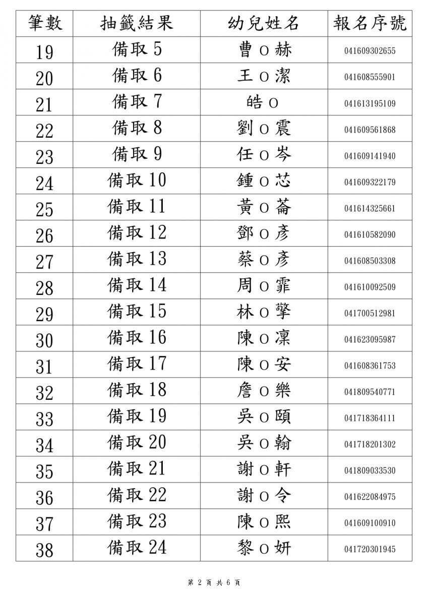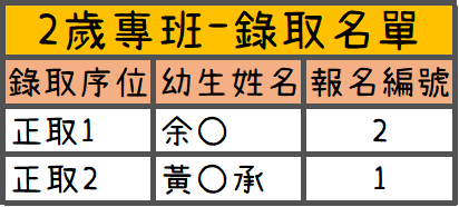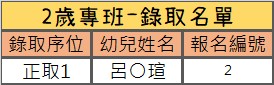 第一階段 2 歲專班 抽籤結果