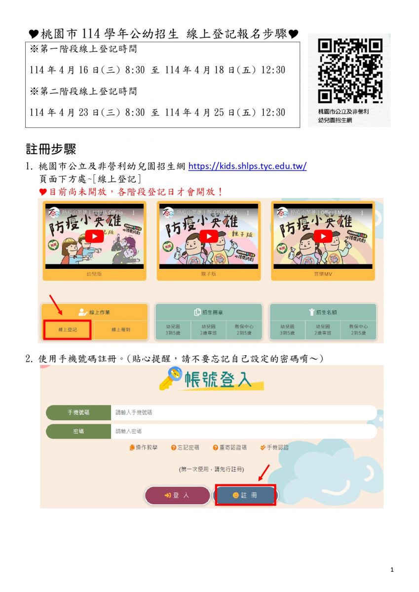 【桃園市公立及非營利幼兒園招生網】