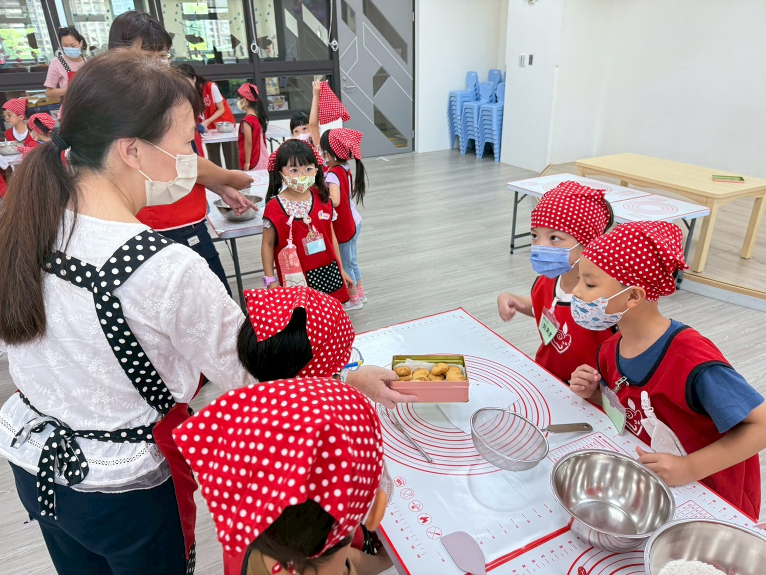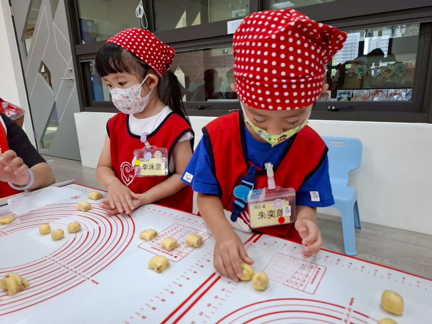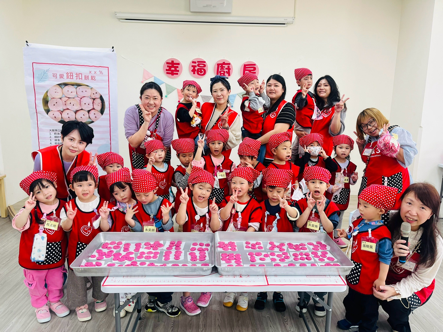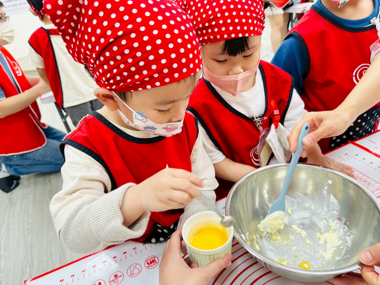 今天小朋友們化身為小小廚師,一起認識做餅乾所需的各種食材,透過觀察顏色、觸摸質地、聞香氣,用五感探索食材的奧秘!在老師與家長志工的協助下,孩子們分工合作,開心地將食材加入鋼盆中攪拌、揉捏,親手製作出一顆顆可愛的鈕扣餅乾。活動最後,大家開心合影,並將香噴噴的餅乾帶回家,與家人一同分享這份甜蜜的成果!