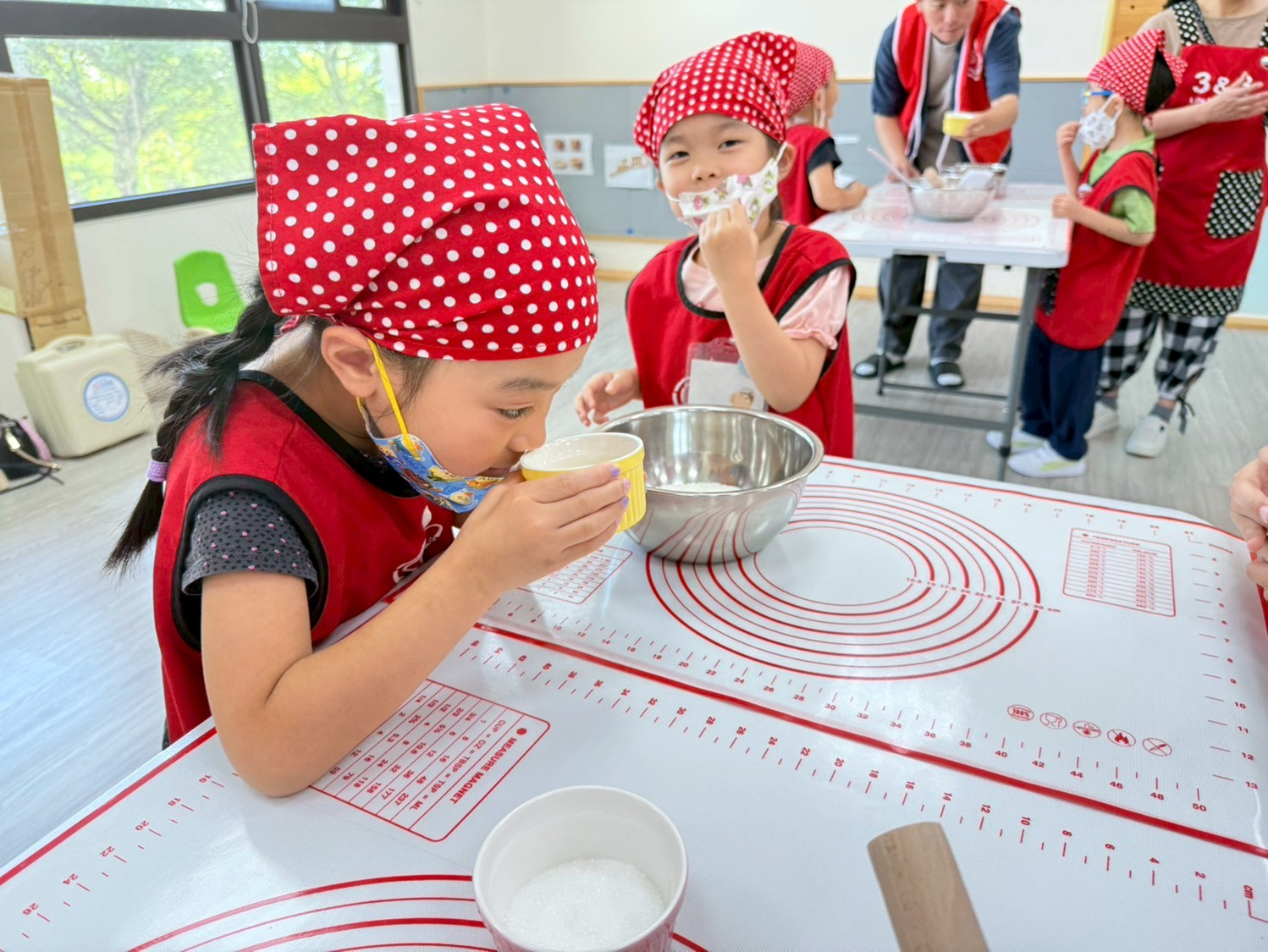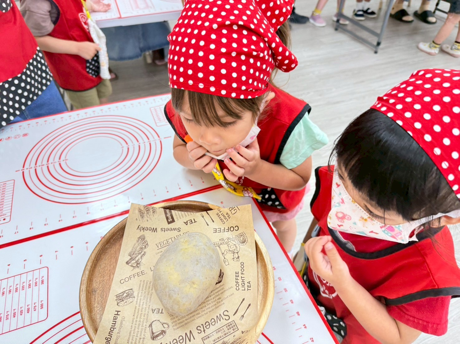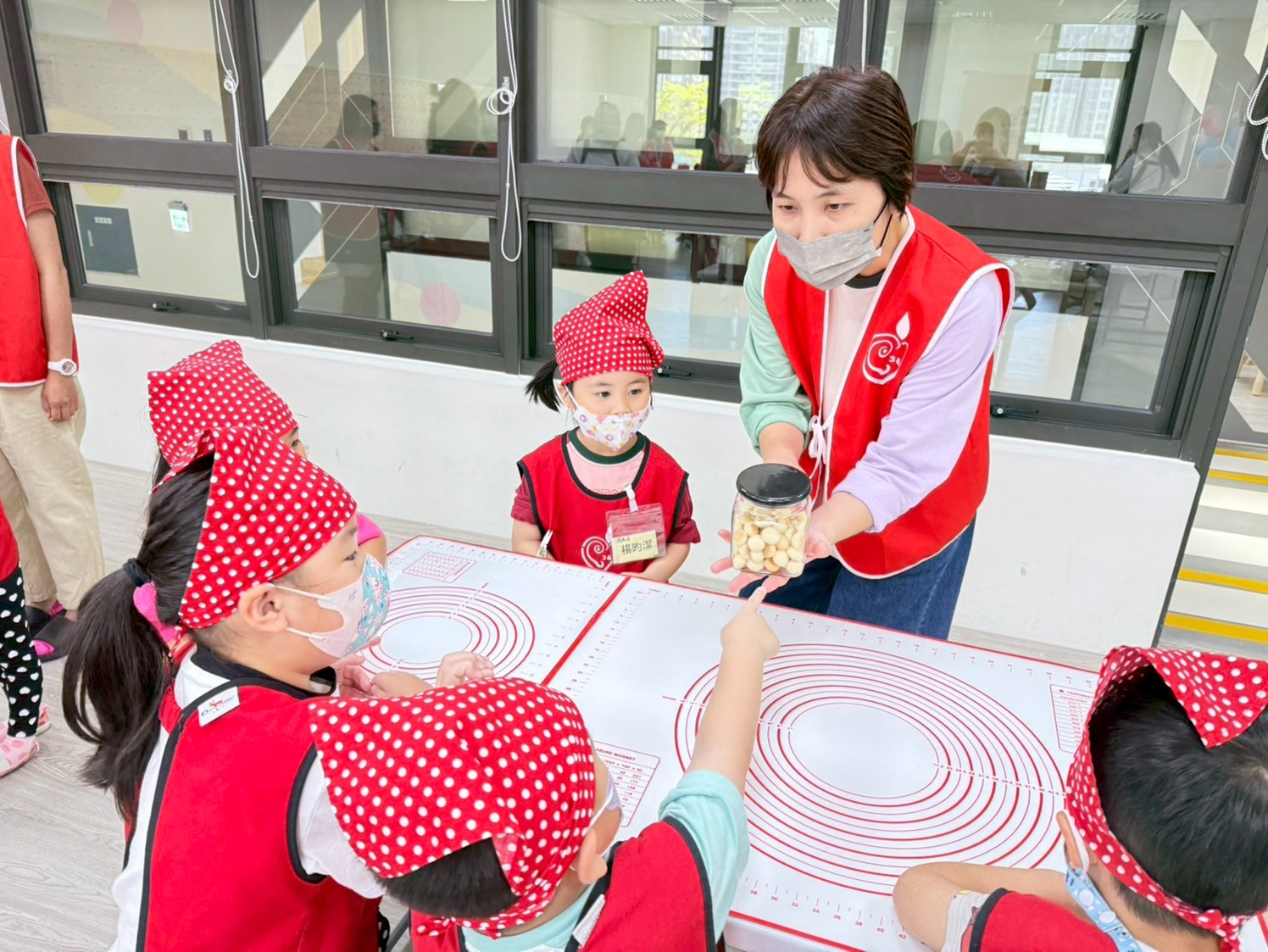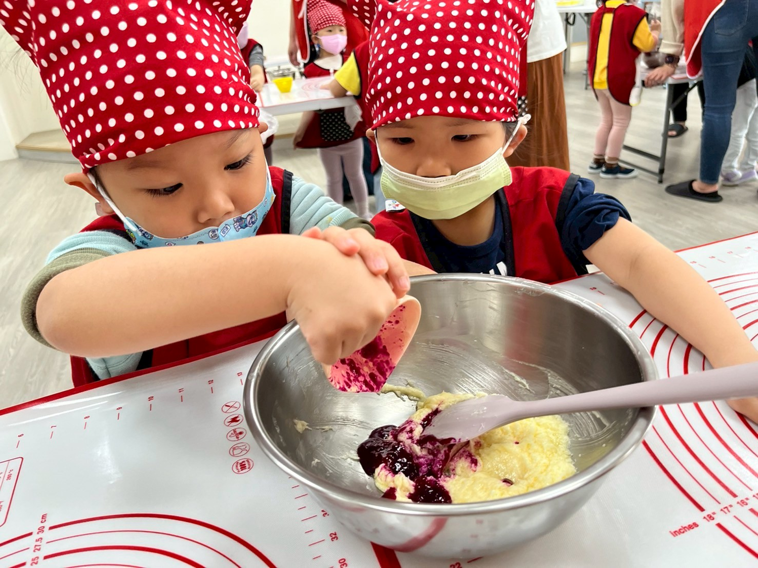 今天小朋友們化身為小小廚師,一起認識做餅乾所需的各種食材,透過觀察顏色、觸摸質地、聞香氣,用五感探索食材的奧秘!在老師與家長志工的協助下,孩子們分工合作,開心地將食材加入鋼盆中攪拌、揉捏,親手製作出一顆顆可愛的鈕扣餅乾。活動最後,大家開心合影,並將香噴噴的餅乾帶回家,與家人一同分享這份甜蜜的成果!