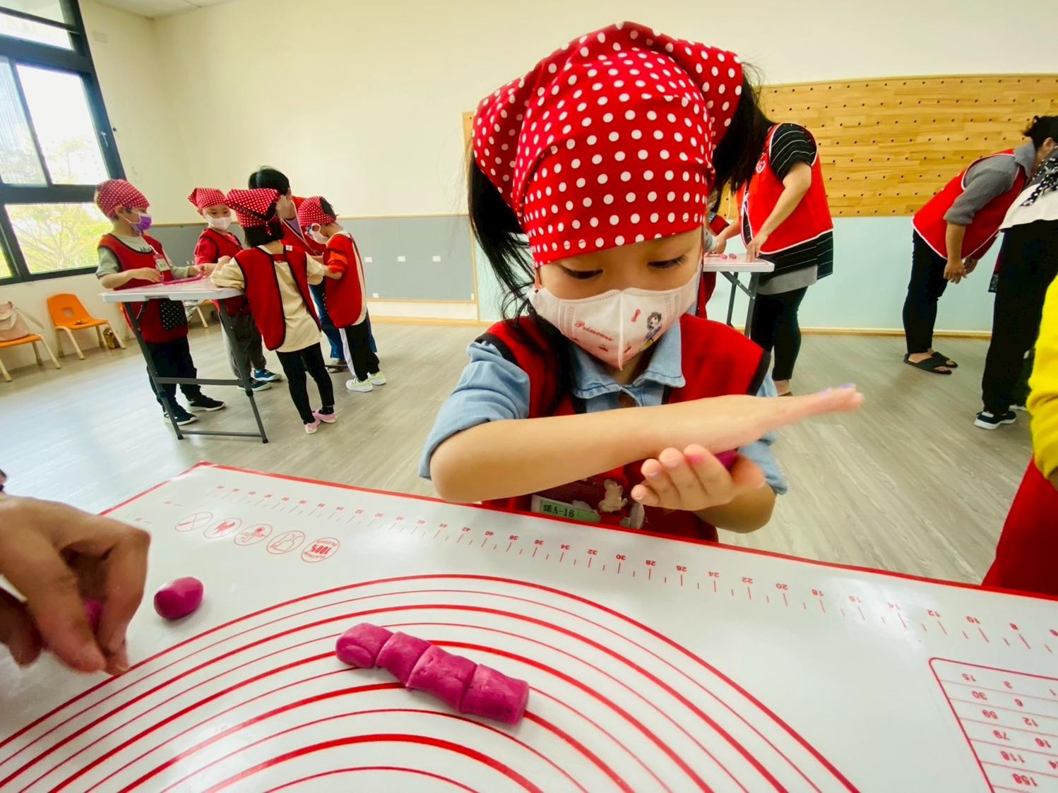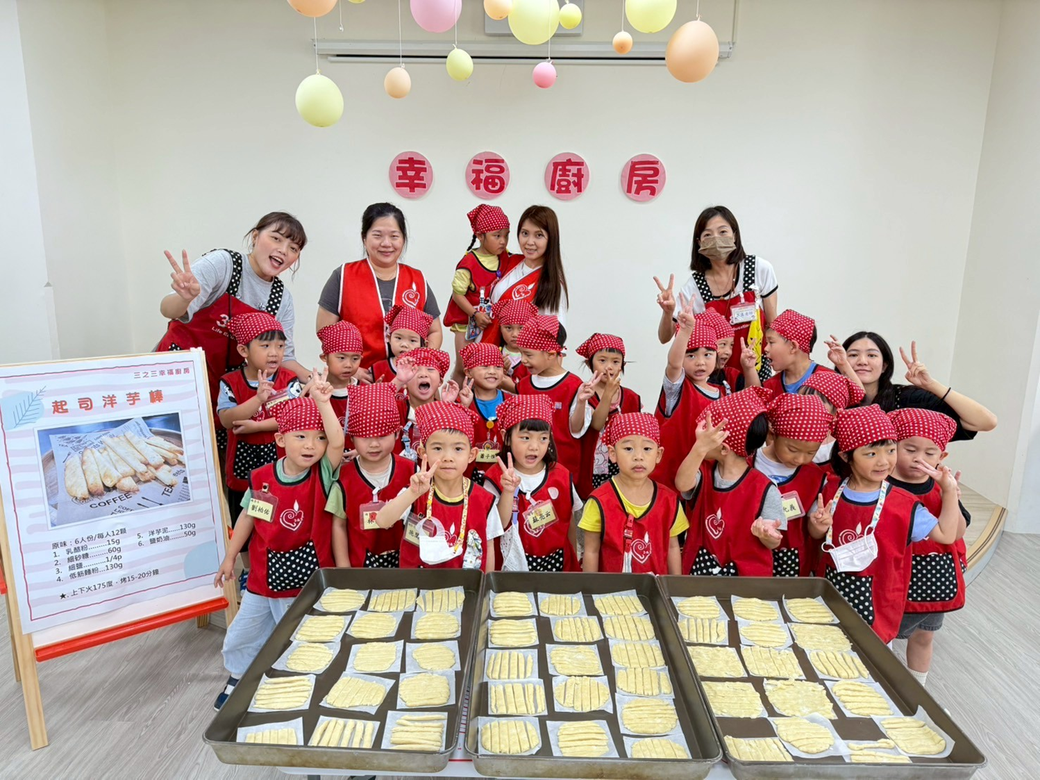 今天的烘焙活動讓孩子們體驗滿滿!老師先介紹各種食材,讓幼兒看到馬鈴薯的原貌,認識它的外形與顏色,並聞一聞香濃的起司粉,開啟味覺與嗅覺的探索之旅。接著,孩子們依照步驟將粉類食材過篩,並與同學一起分工合作攪拌,過程中歡笑聲不斷。感謝老師與志工家長們的耐心協助,活動最後還一起合影留念。香噴噴的起司洋芋棒完成後,孩子們開心地帶回家與家人分享,用美味延續這段幸福的學習時光。