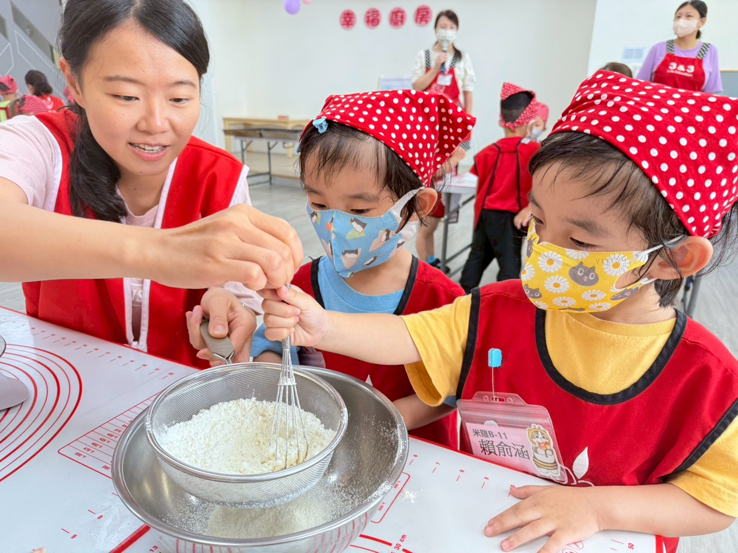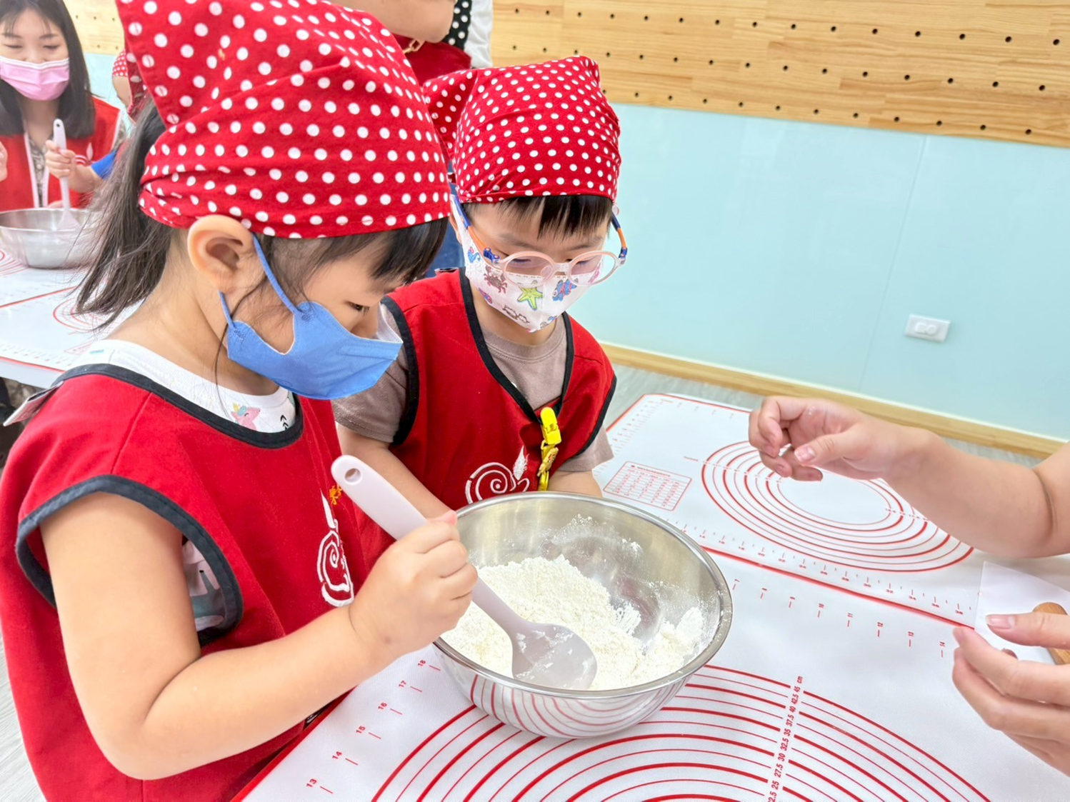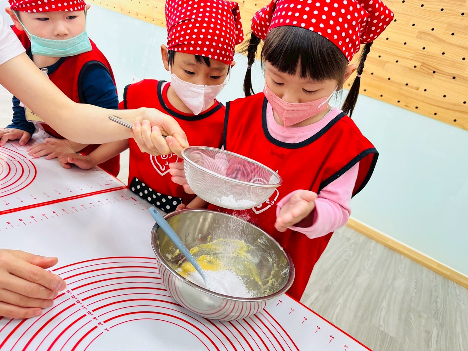 在今天的「小小烘焙師」活動中,孩子們透過五感探索各種食材,仔細觀察食材的顏色與形狀、聞一聞香氣、摸一摸粉類的質地,開啟感官新體驗。接著,在老師的引導下,小朋友們依照步驟將麵粉過篩,並與同伴們分工合作,一起攪拌混合,享受團隊合作的樂趣。活動中感謝老師與志工家長們的細心協助,讓整個過程順利又溫馨,並留下珍貴的合影紀念。最後,孩子們開心地把親手參與製作的旺仔小饅頭帶回家,與家人一同分享這份幸福又甜美的成果!