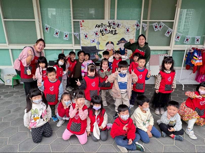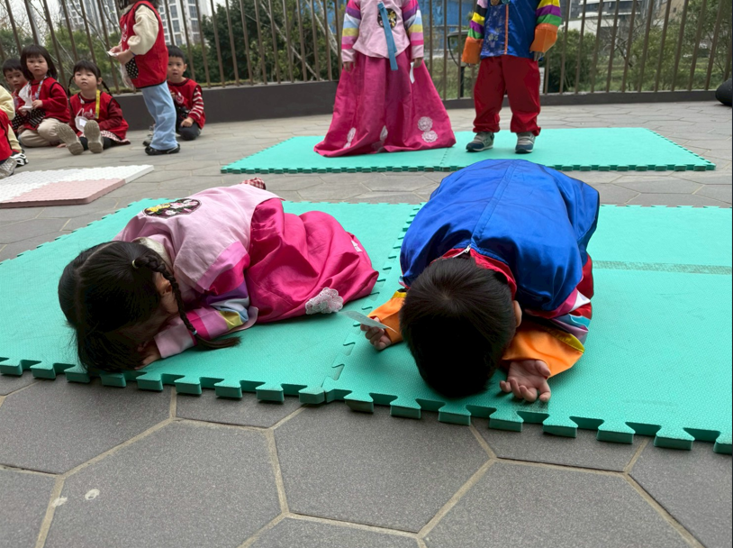 透過有趣的韓語及動作示範,不僅讓孩子們學學不同國家的新年習俗,