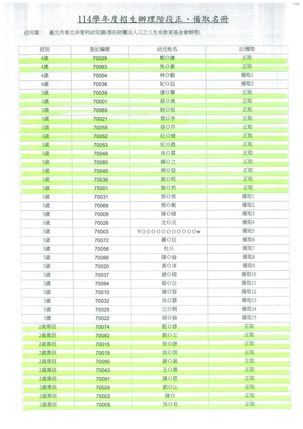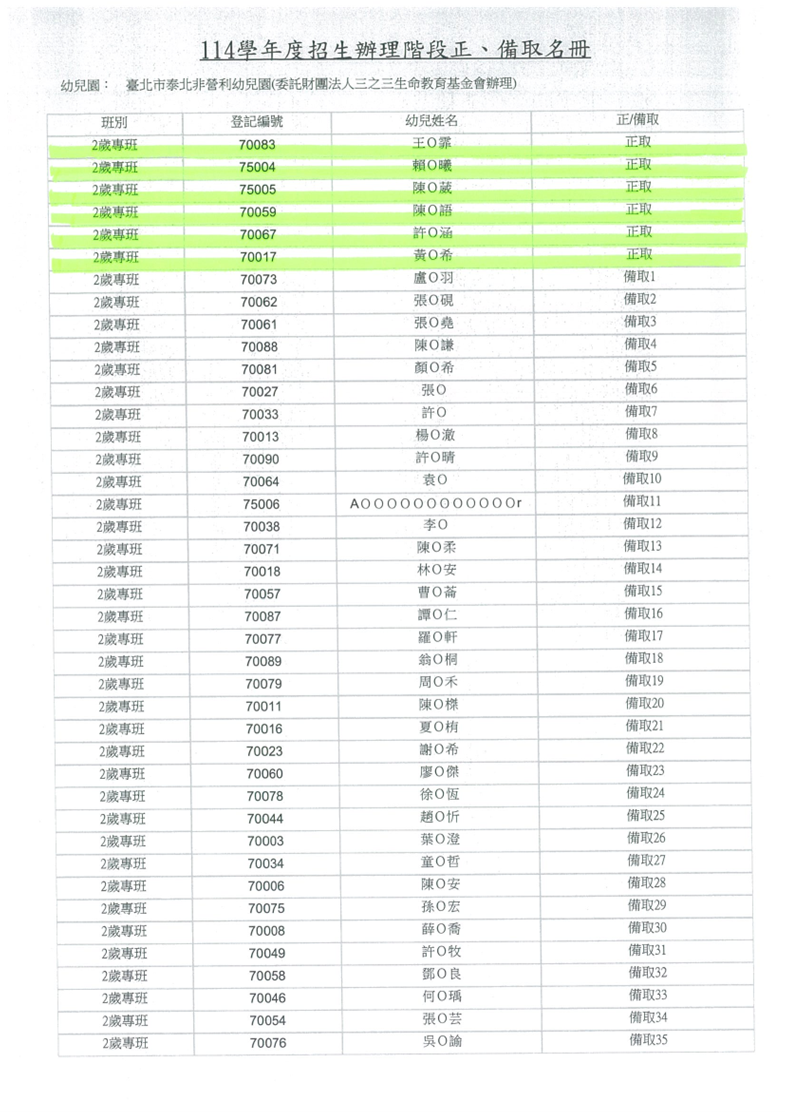 ★114學年度招生辦理階段 正、備取名冊★