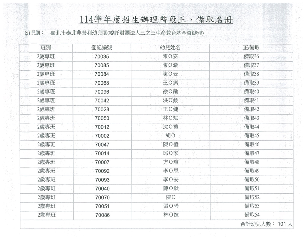 臺北市114學年度泰北非營利幼兒園招生公告