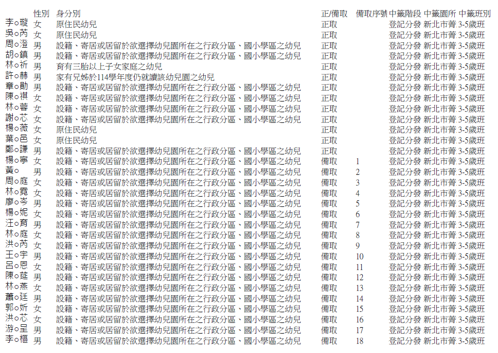 114學年度錄取與候補名單