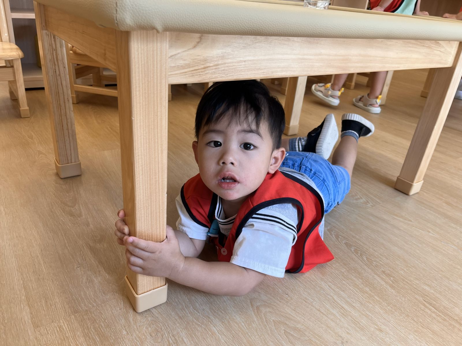 練習在搖晃時記住「趴下、掩護、穩住」,並冷靜、有序地前往至戶外避難。