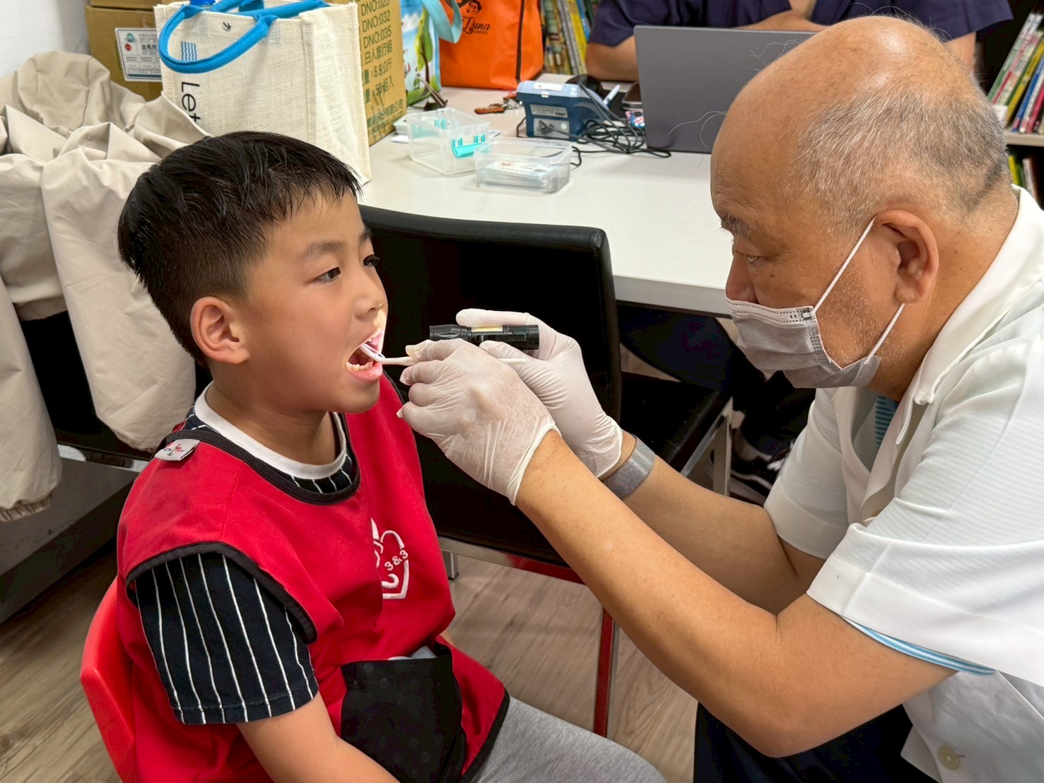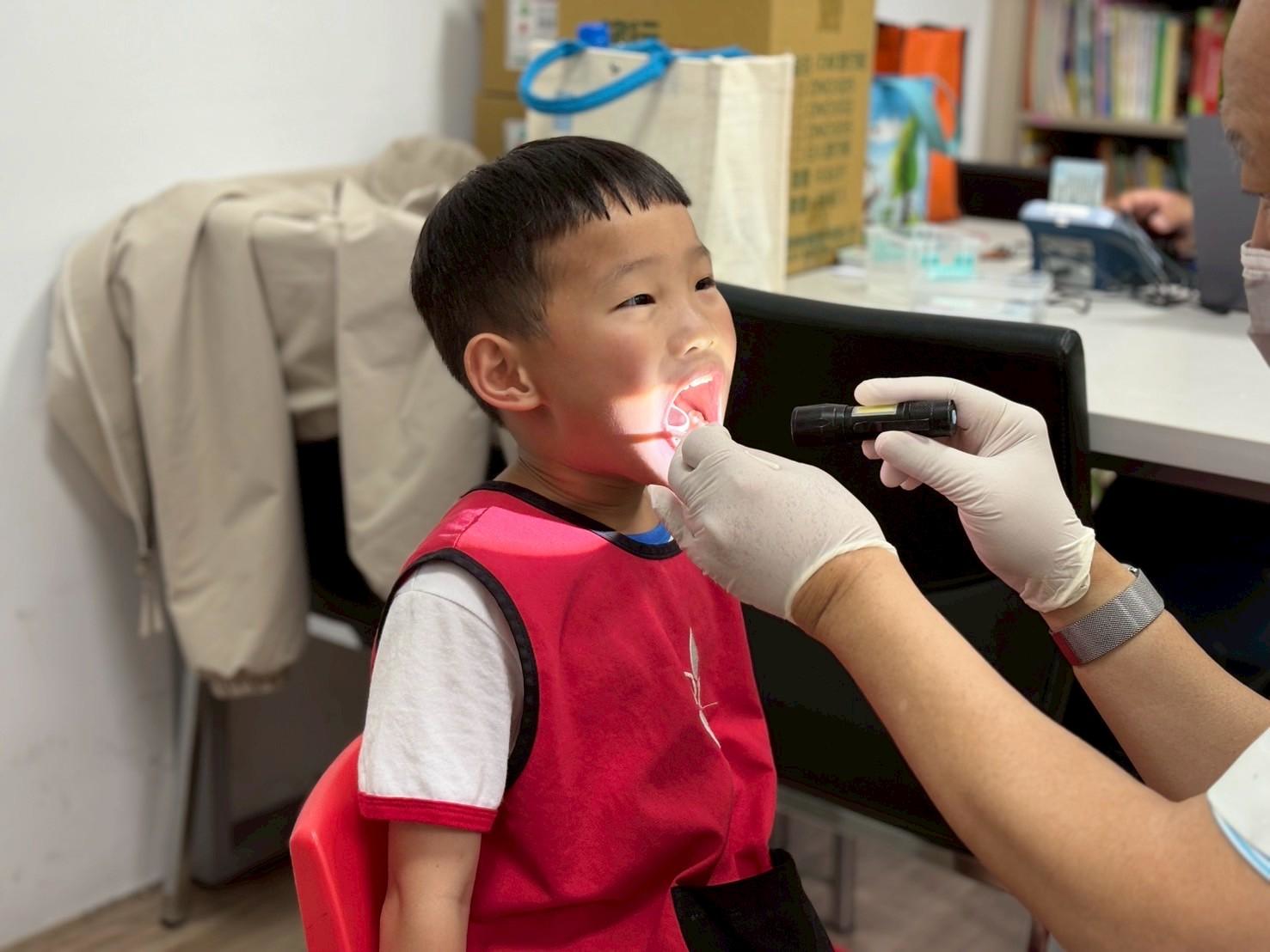 每半年一次的牙齒檢查和塗氟,寶貝們都有勇敢地張大嘴巴 ☺