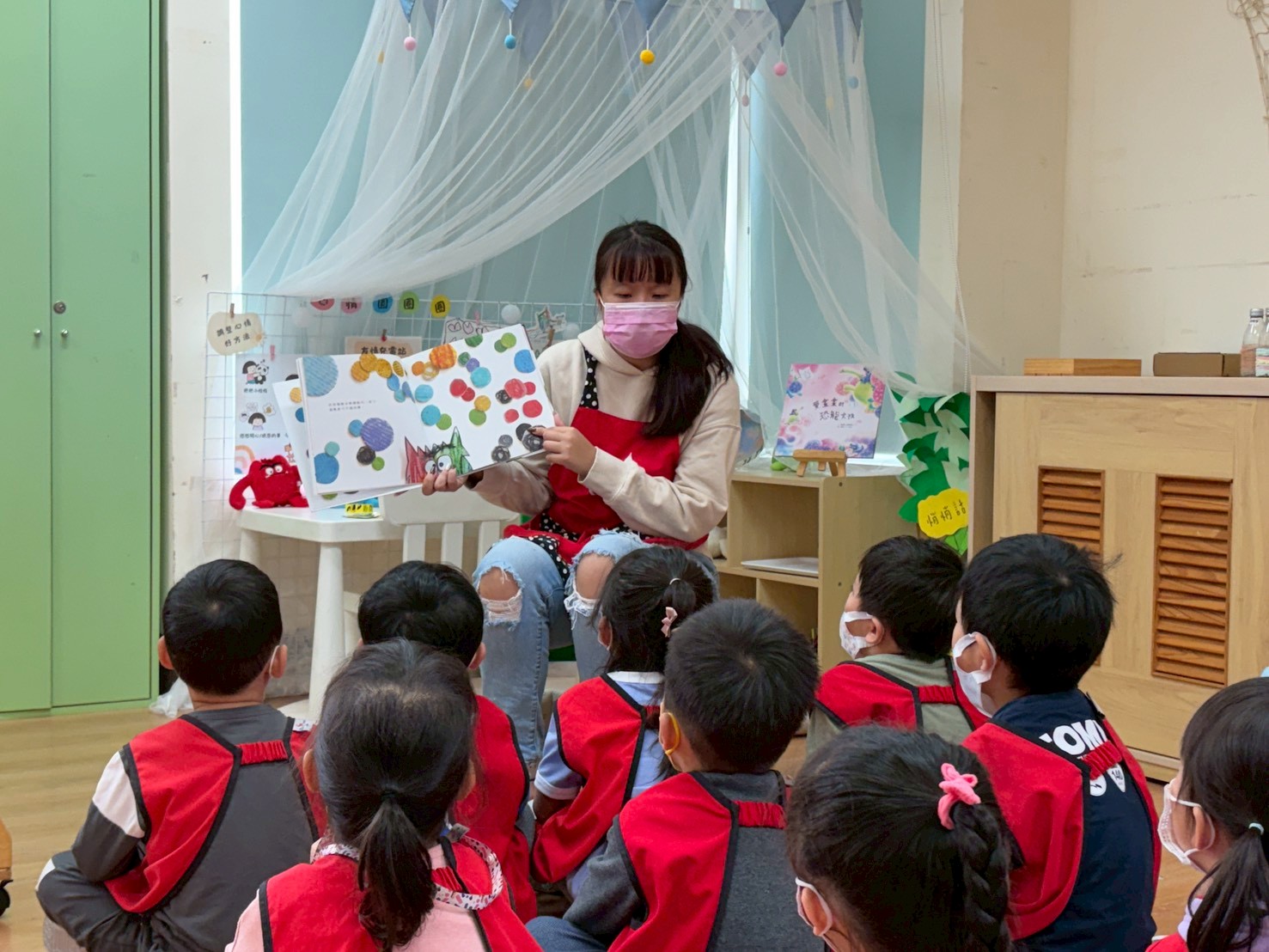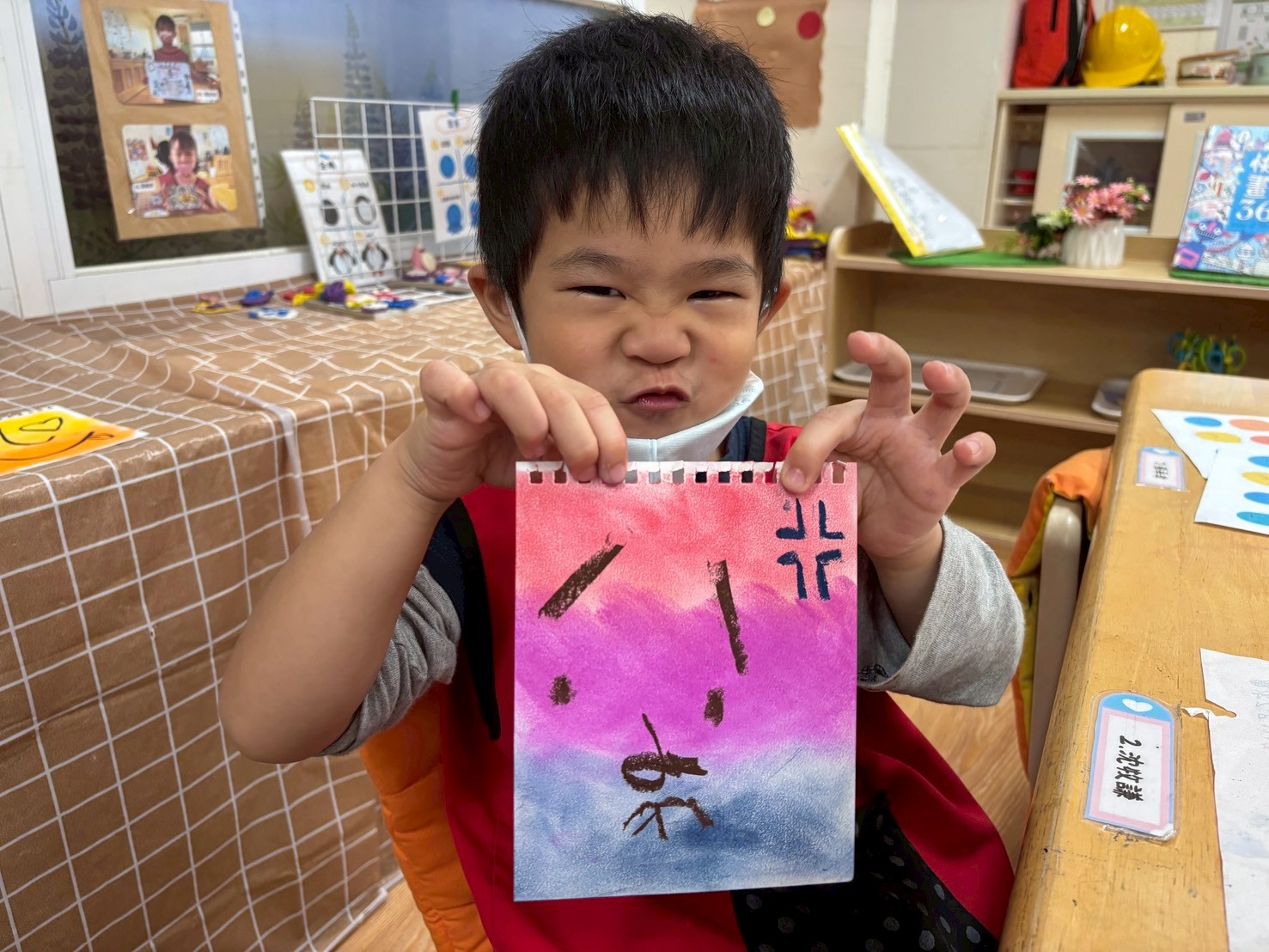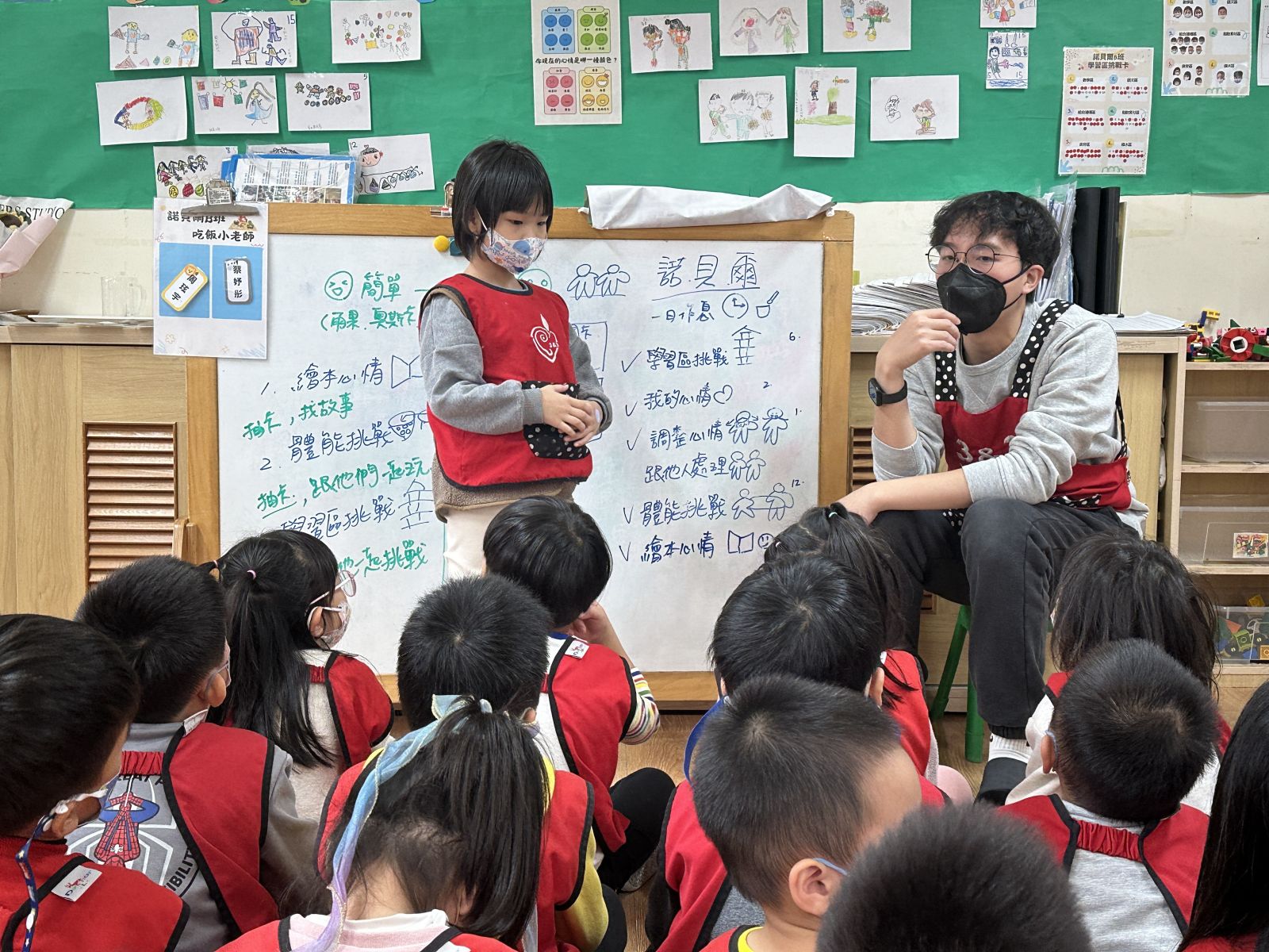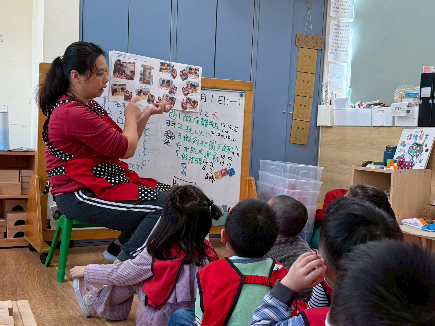 孩子們透過《彩色怪獸上學去》與《彩色怪獸情緒醫生》學會用顏色表達心情,並討論如何冷靜下來。大家創作了「心情日記」,記錄心情與原因,並透過每日分享練習表達與調節情緒。這讓教室變得更加溫暖與舒心。
