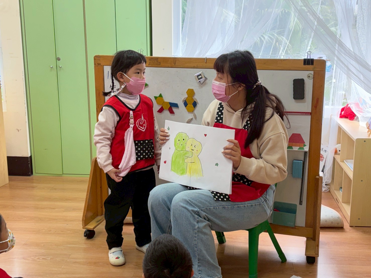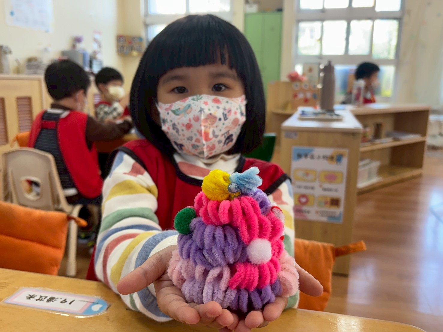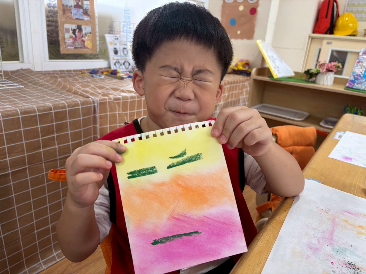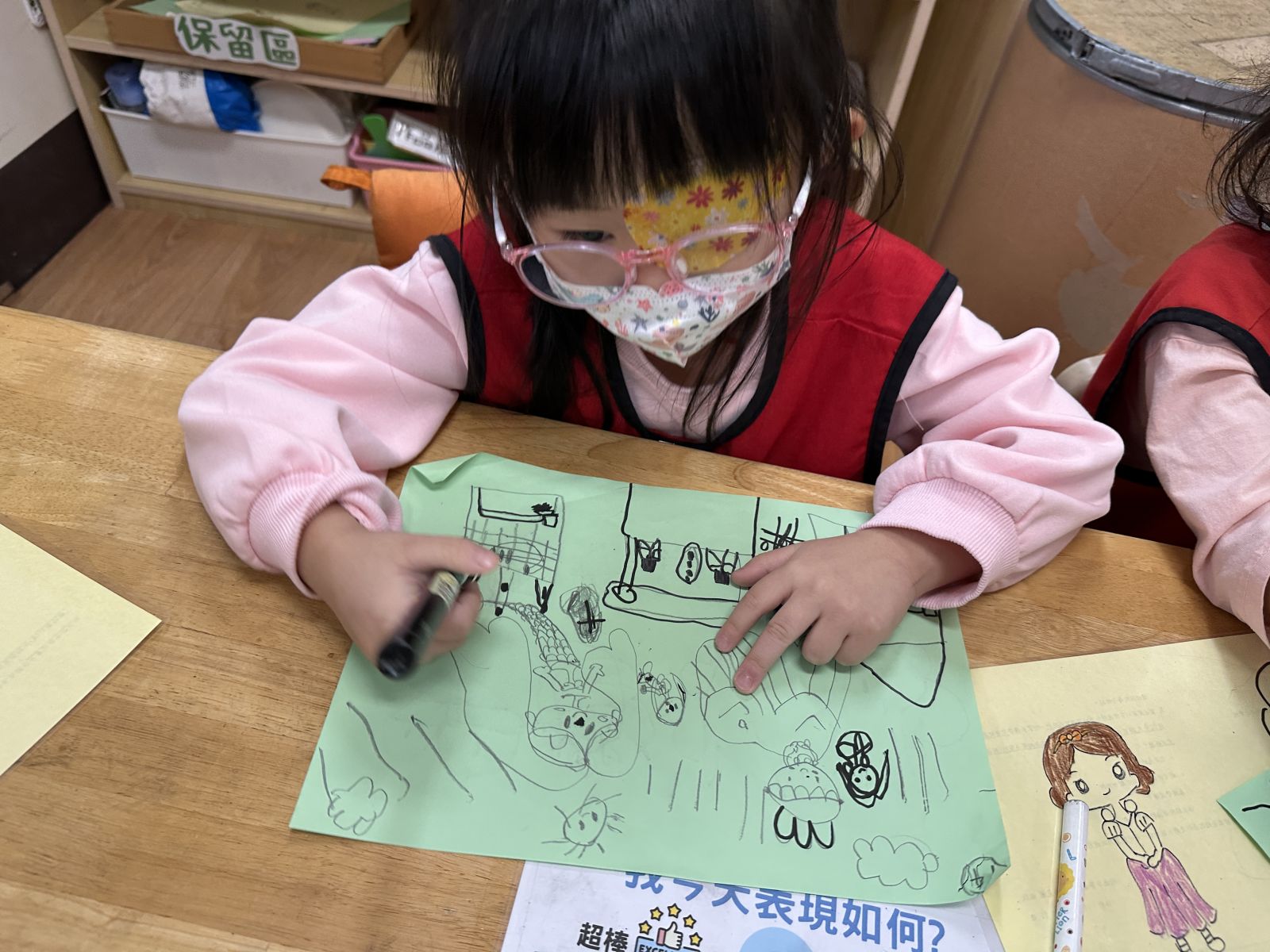 孩子們透過《彩色怪獸上學去》與《彩色怪獸情緒醫生》學會用顏色表達心情,並討論如何冷靜下來。大家創作了「心情日記」,記錄心情與原因,並透過每日分享練習表達與調節情緒。這讓教室變得更加溫暖與舒心。