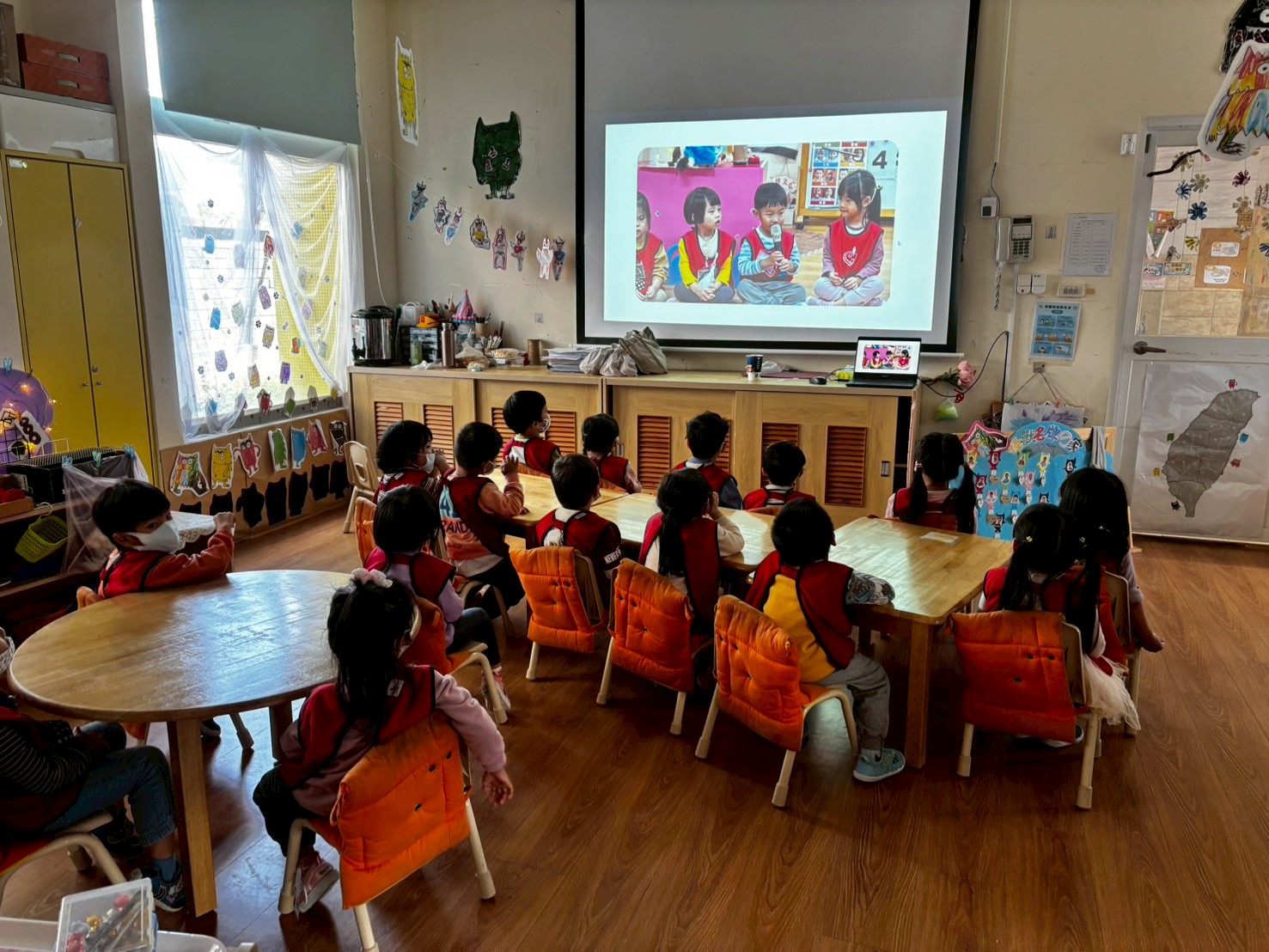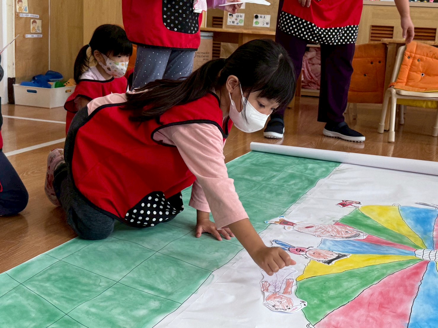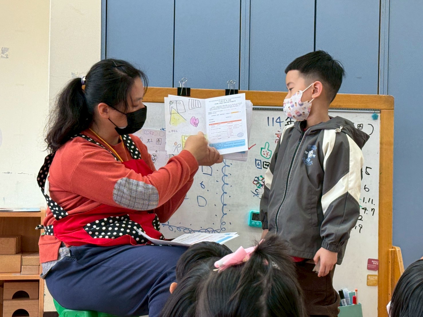 孩子們與老師共同討論高峰活動的佈置方式,並實地觀察教室動線與擺設,在反覆調整與合作中,逐步呈現出能邀請爸爸媽媽參與的最佳活動樣貌。