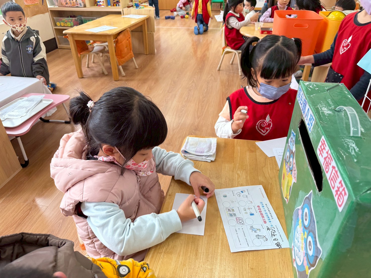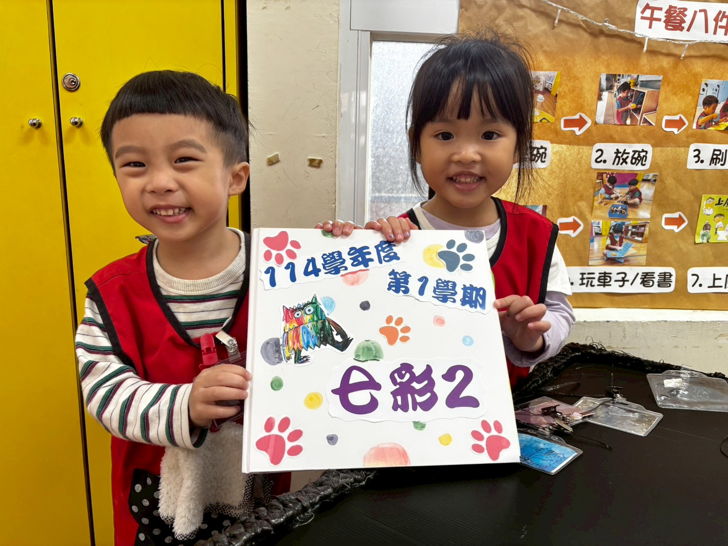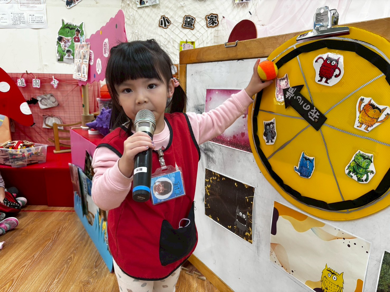 每個小怪獸抽出小幫手名牌,並大聲喊出:「我是**小幫手!」小幫手負責完成任務,如排碗、擦桌子和整理書包區。任務完成後,全班一起做「能量擊掌」,並喊口號:「小幫手,任務完成!」