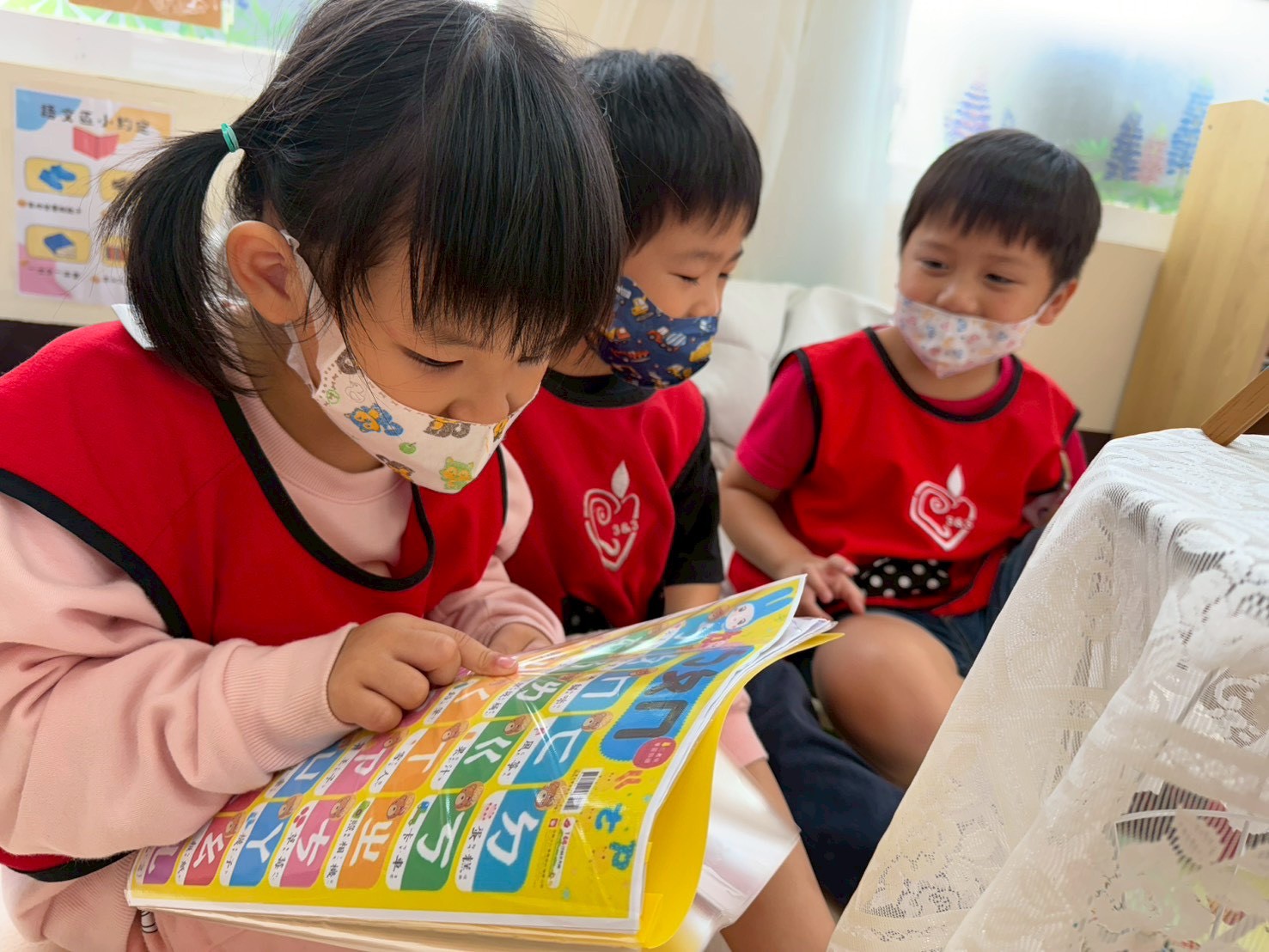 透過豐富的圖書、字卡、拼音遊戲、角色扮演與寫畫活動,孩子們在自在探索中愛上「說、聽、讀、寫」的表達樂趣。