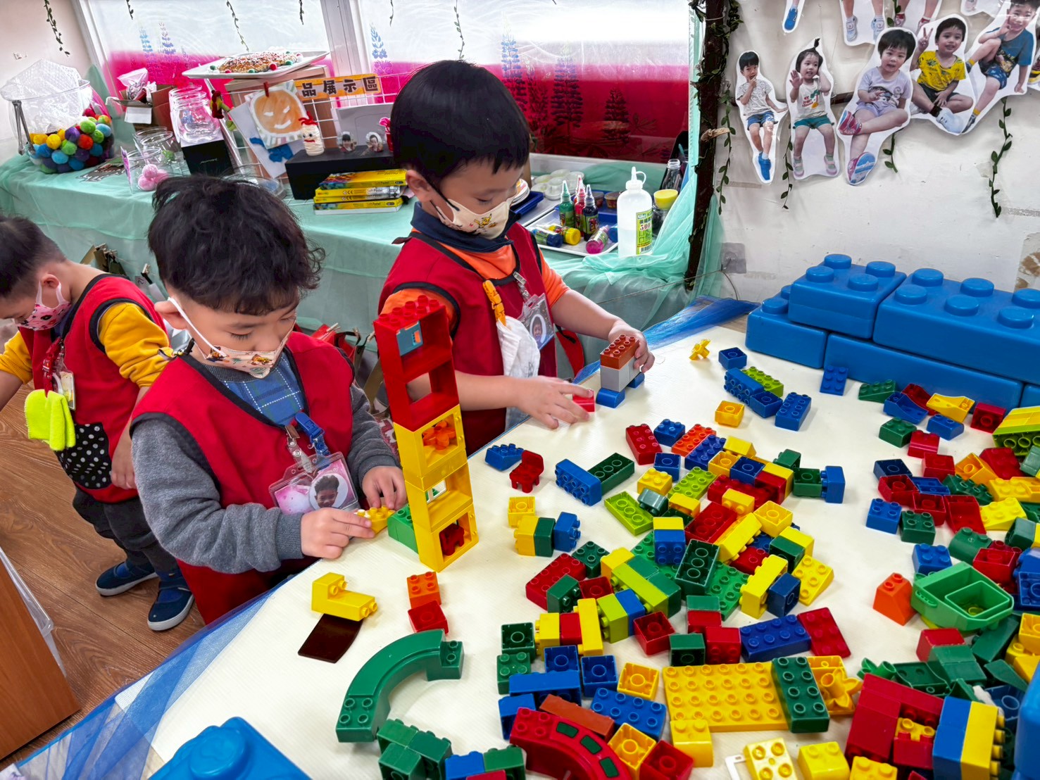 藉由各式組合教具,孩子們能藉由過程中拼湊出創意作品及與同儕互相交流製作方式。